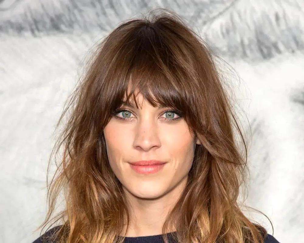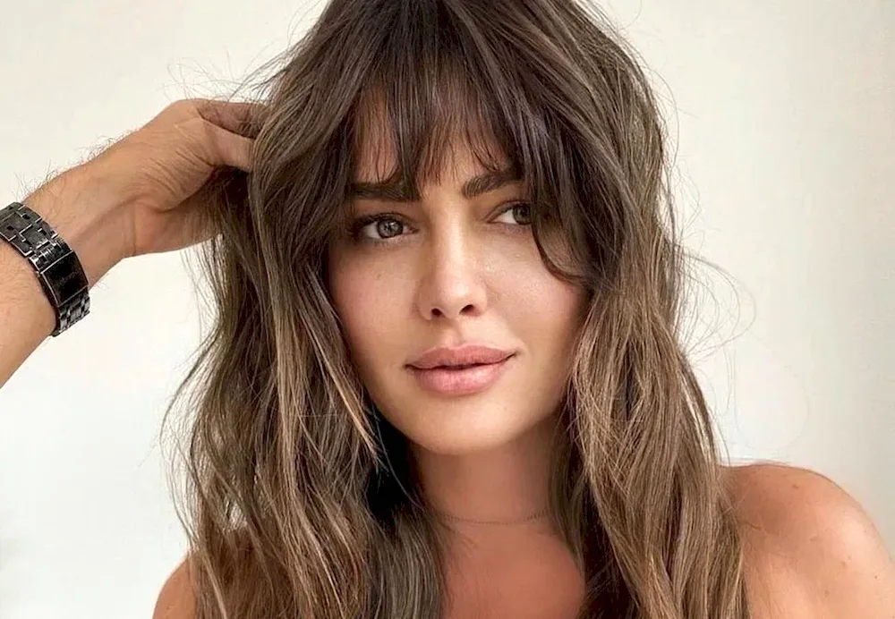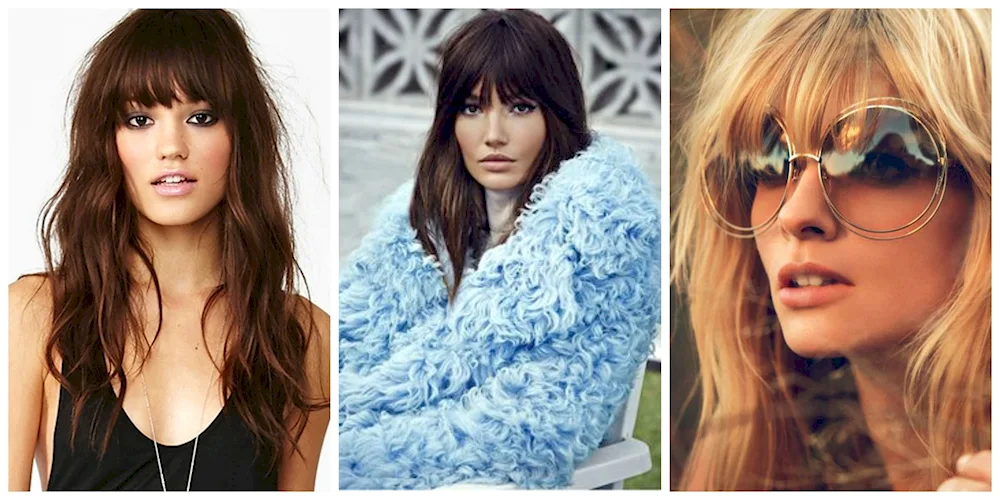 Shaggy bangs for long hair Long hair with shaggy fringe, framing the face in a casual and effortless style. Loose and textured bangs adding a playful and youthful touch to a classic long hairstyle.