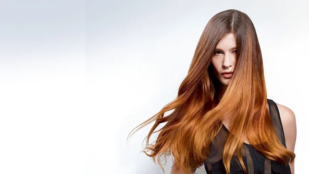 Shatush on red hair Red-haired lady with shatush highlights showcasing a beautiful gradient effect on her long locks. Close-up shots capture the stunning blend of light and dark tones in her vibrant red hair.