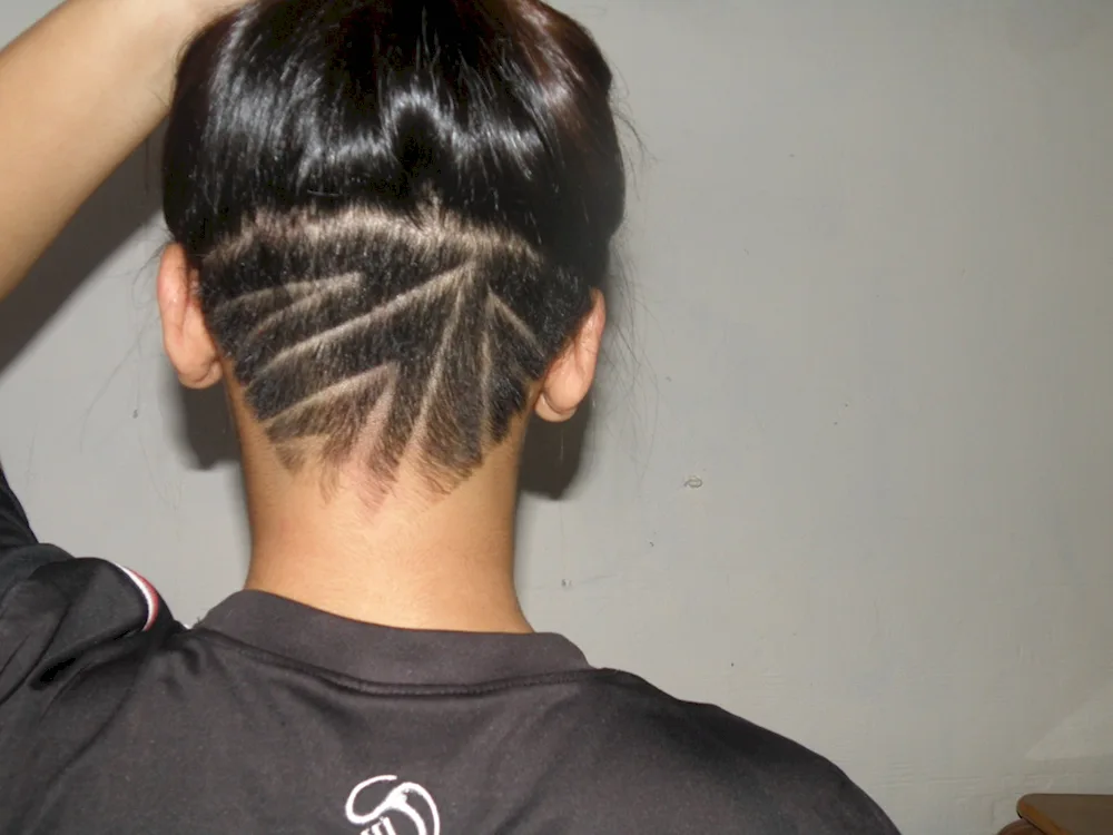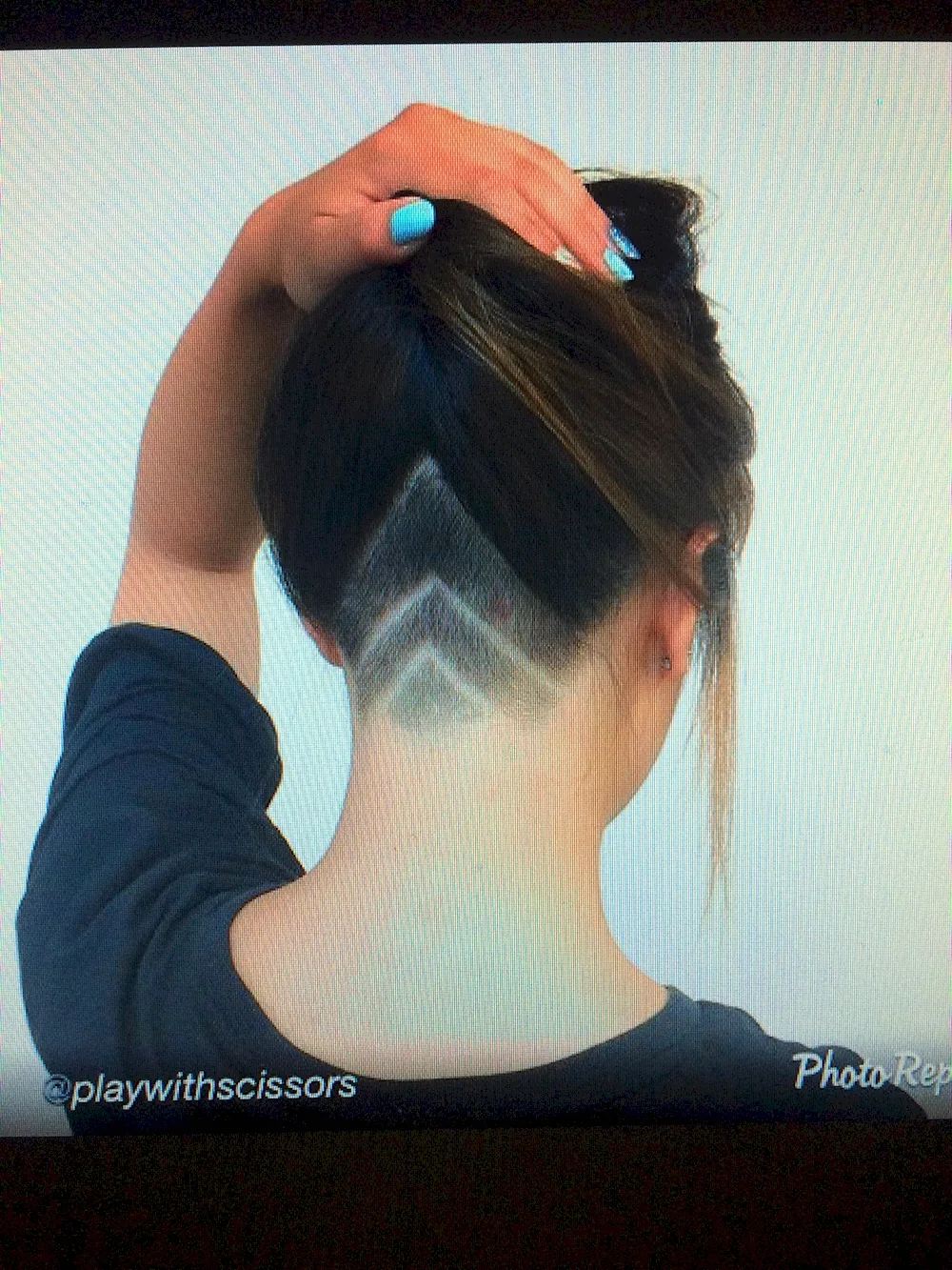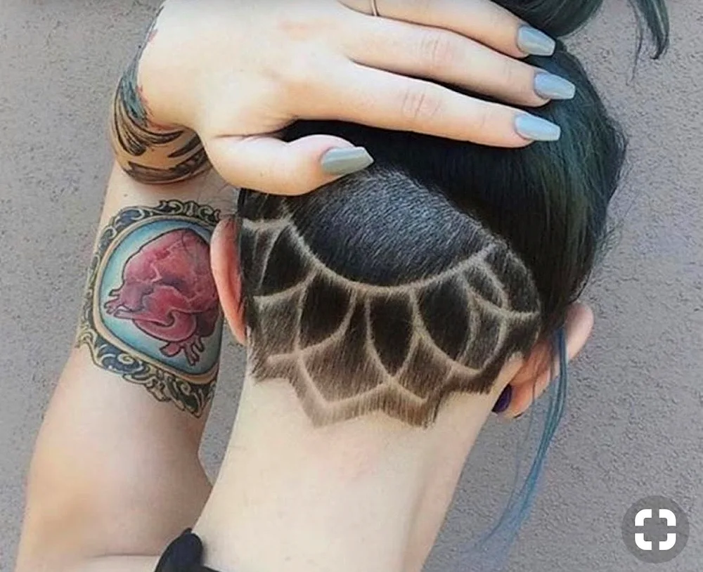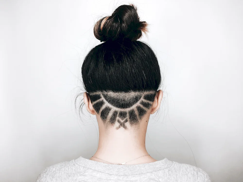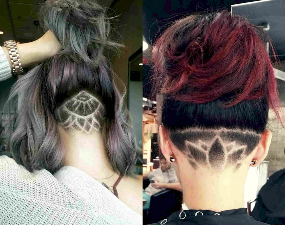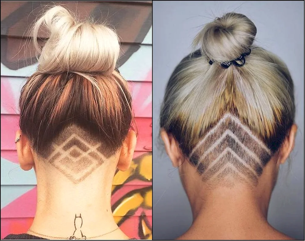 Photos show individuals with long hair that has been shaved at the back of their heads, creating a unique and stylish look. The images display various hair colors and styles to inspire your own shaved back hair design.