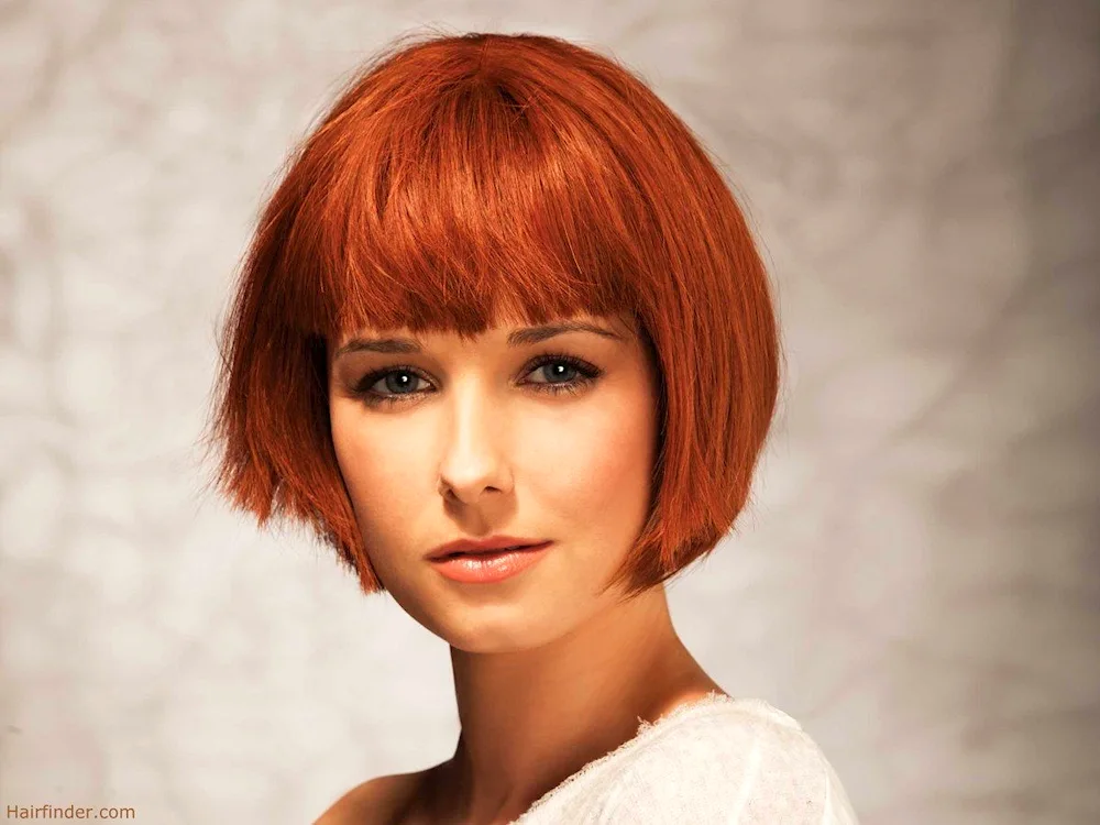 Short bob haircut with bangs Photos of chic short bobs with stylish bangs, perfect for a fresh and modern look. Explore different lengths and textures to find the perfect bob style for you!