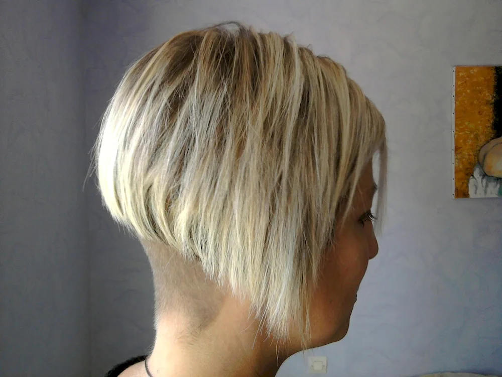Short bob on a leg  Here are some images of a cute short bob hairstyle on a mannequin leg. The photos showcase the bob cut from different angles, giving you a clear idea of how it looks.