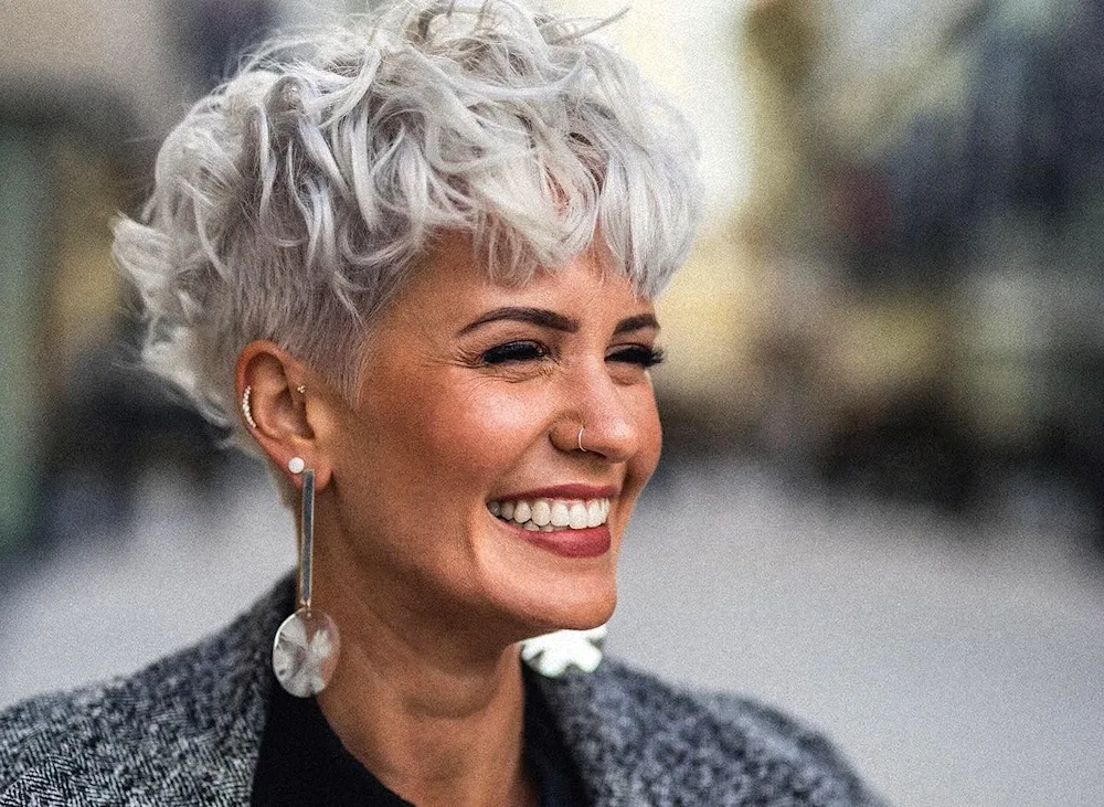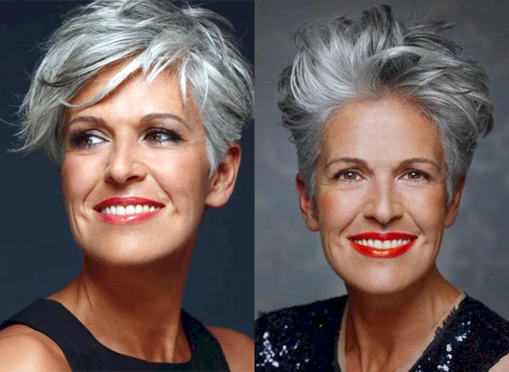 Stylish short hairstyles for women with gray hair, showcasing chic pixie cuts, textured bobs, and sleek crops for a modern and youthful look. These images feature trendy haircuts that embrace natural gray hair, adding depth and sophistication to your overall style.