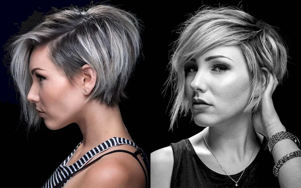 Photos of edgy short haircuts featuring long strands cascading around the face, perfect for those looking to make a bold statement with their hairstyle. These images showcase the unique combination of short and long hair for a modern and high-fashion look that is sure to turn heads.