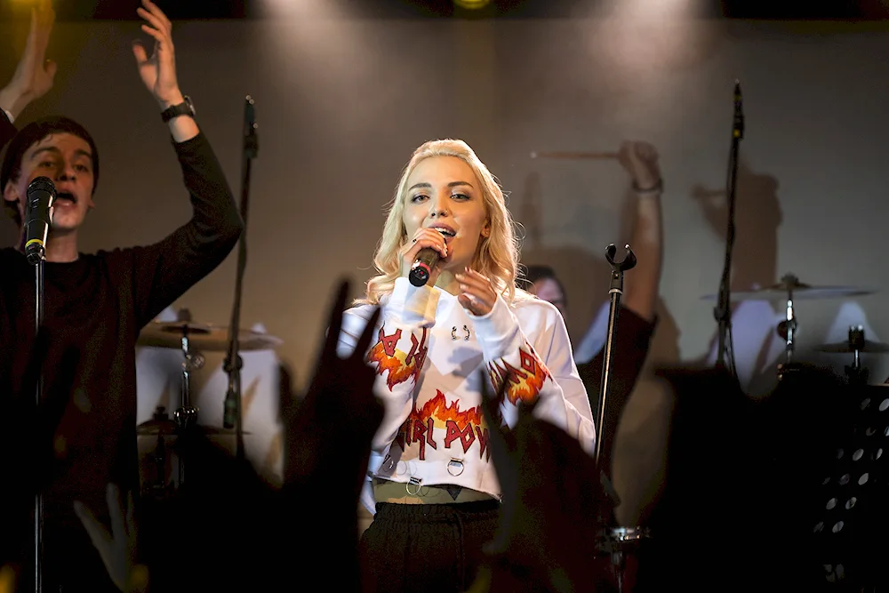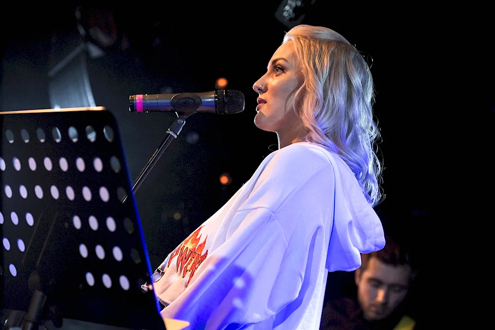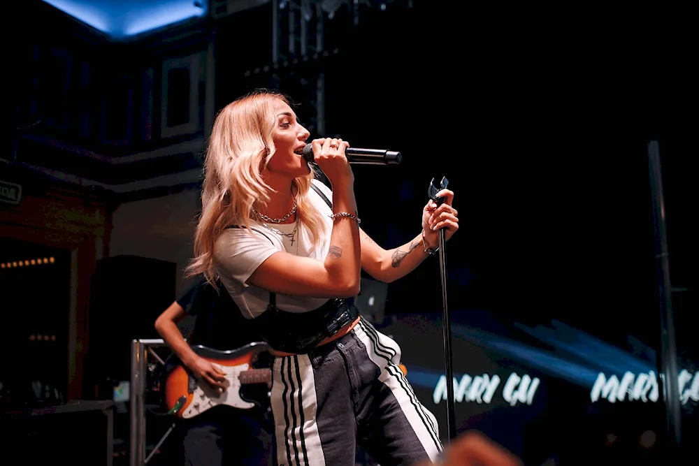 Mary Goo, the talented singer, is captured in various candid shots performing on stage with passion and energy, showcasing her powerful vocals and stage presence. In another image, Mary is seen in a studio recording her latest album, surrounded by microphones and musical instruments as she pours her heart into each note.