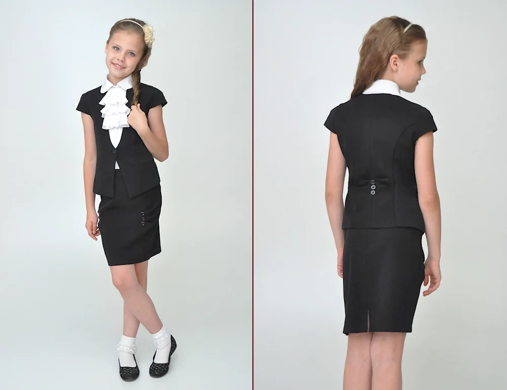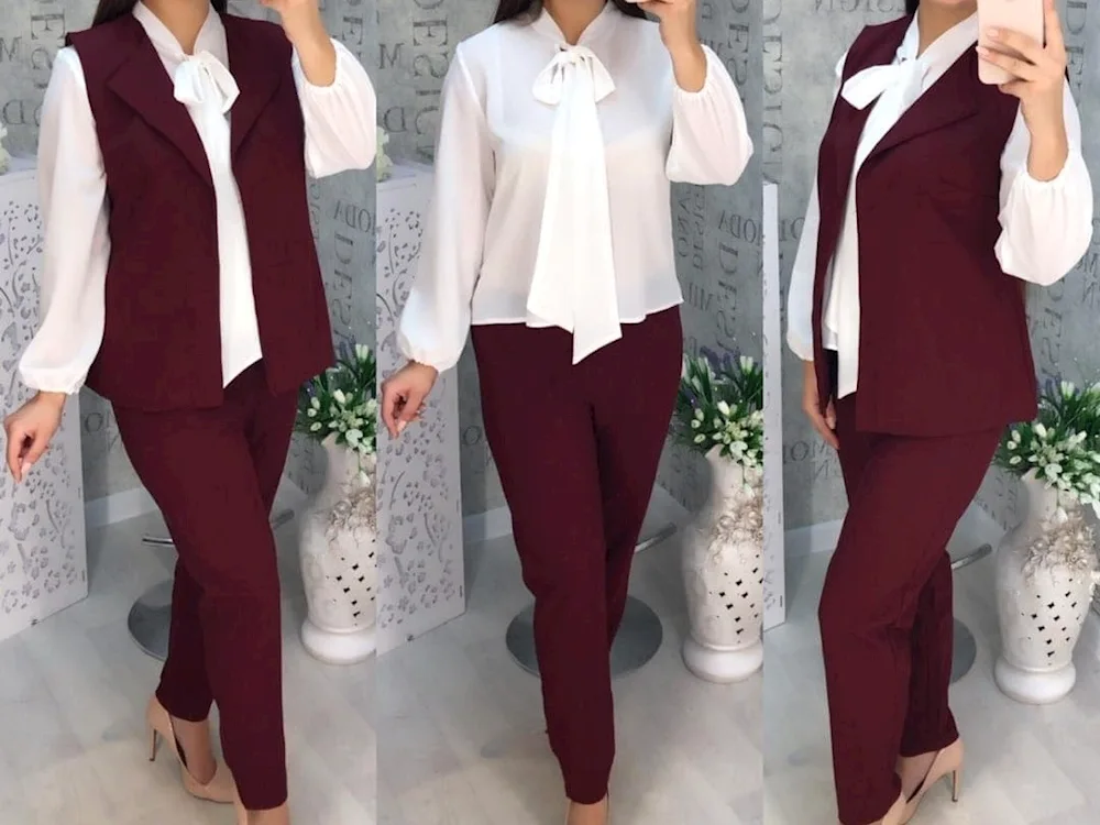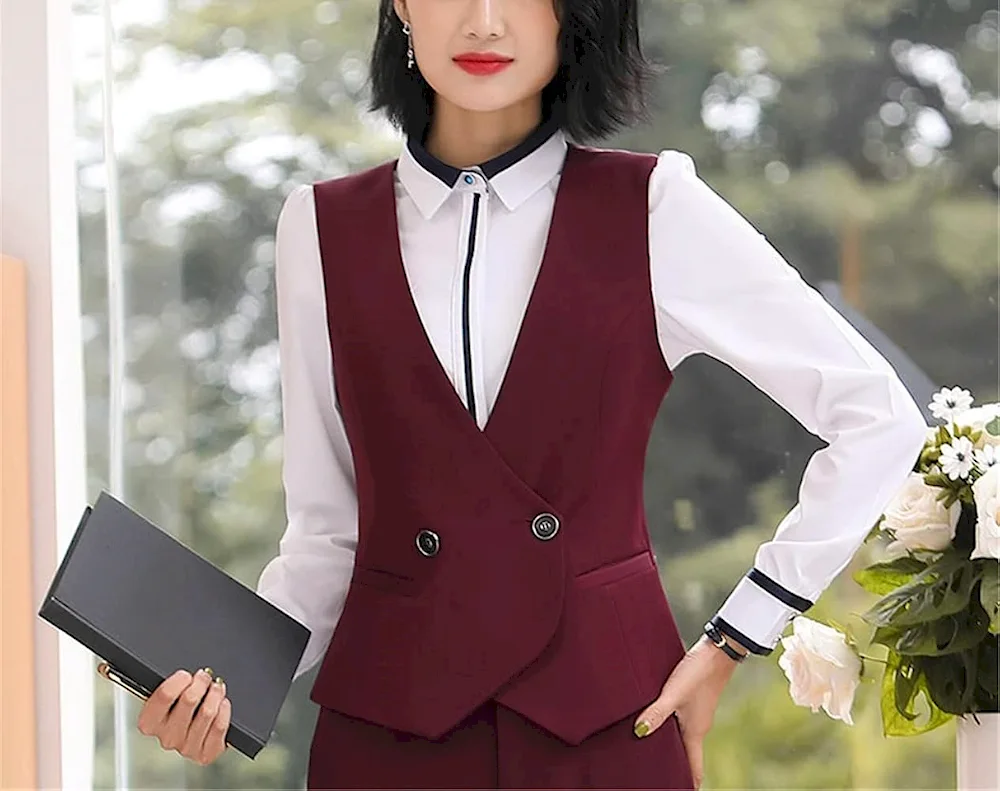 Skirt and vest suit: Incredibly chic and modern ensemble consisting of a tailored vest paired with a matching skirt, perfect for a professional and polished look. These photos showcase different colors and styles of skirt and vest suits, giving you plenty of options to choose from for your next outfit.
