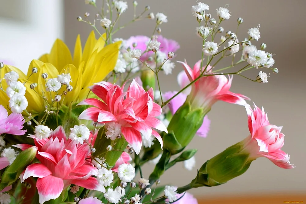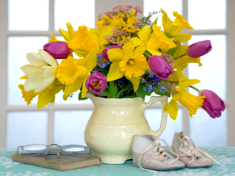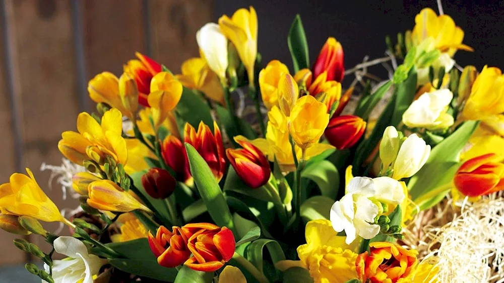 Collection of vibrant spring bouquets featuring a variety of colorful flowers such as tulips, daffodils, and hyacinths, perfect for brightening up any room. Pictures show different arrangements and styles, from elegant and classic to whimsical and modern, sure to inspire your own floral creations.