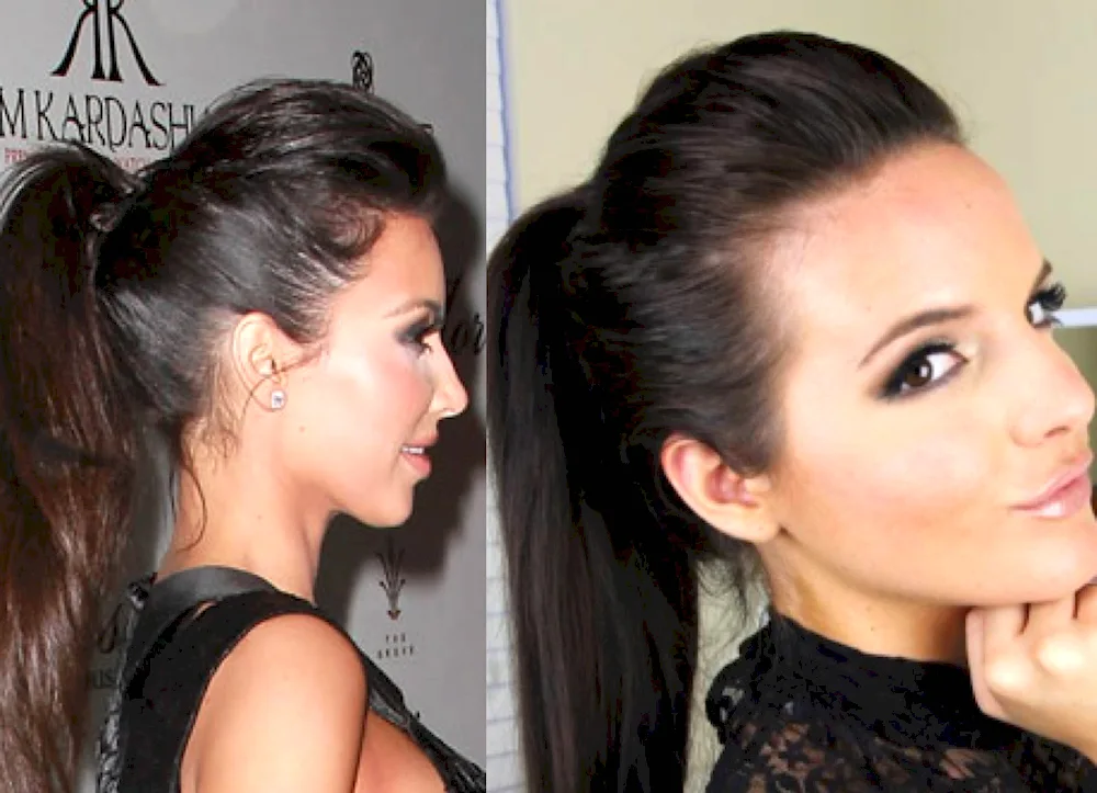 Kim Kardashian hairstyle with slicked back hair