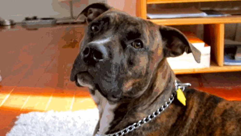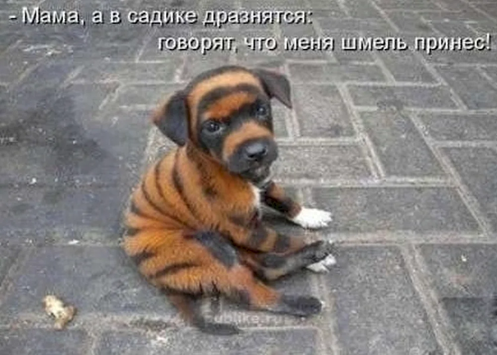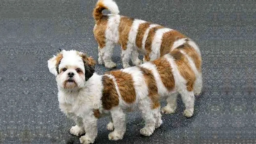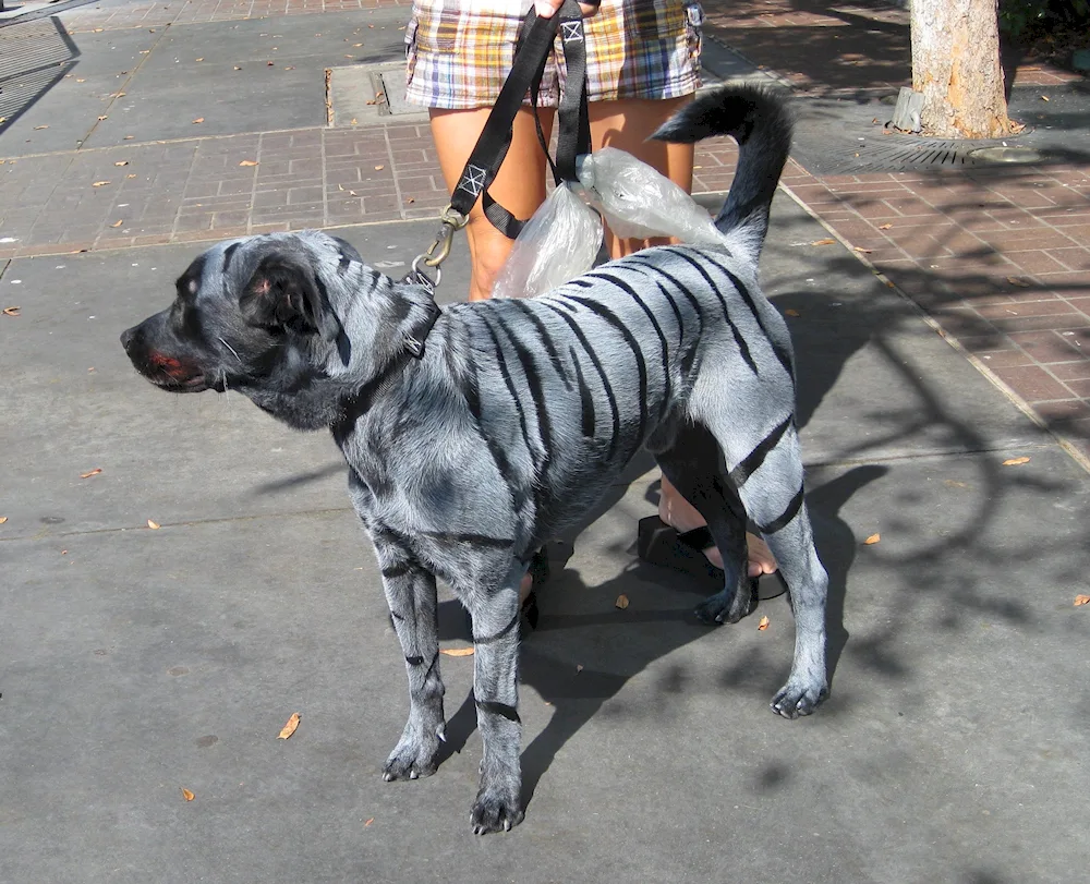 Striped dog Check out these photos of a cute pup with unique stripes on its fur - it's sure to brighten your day! The images capture the playful nature and adorable face of this striped dog.