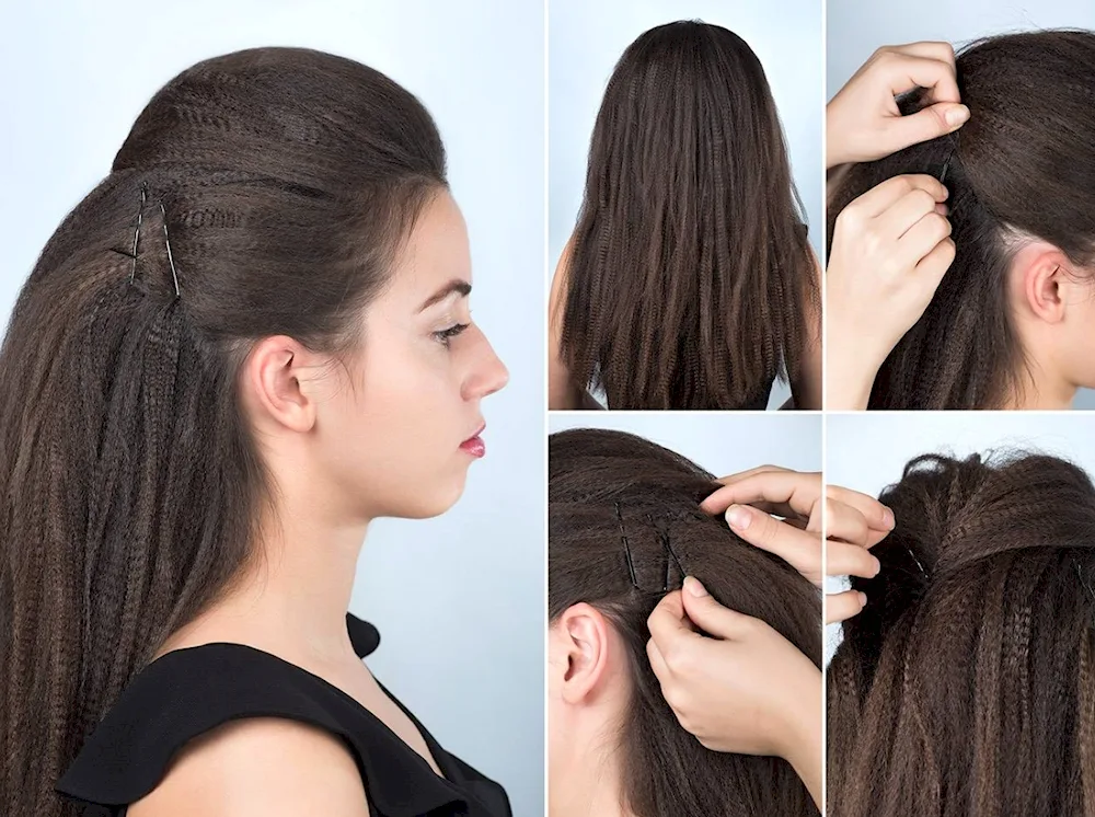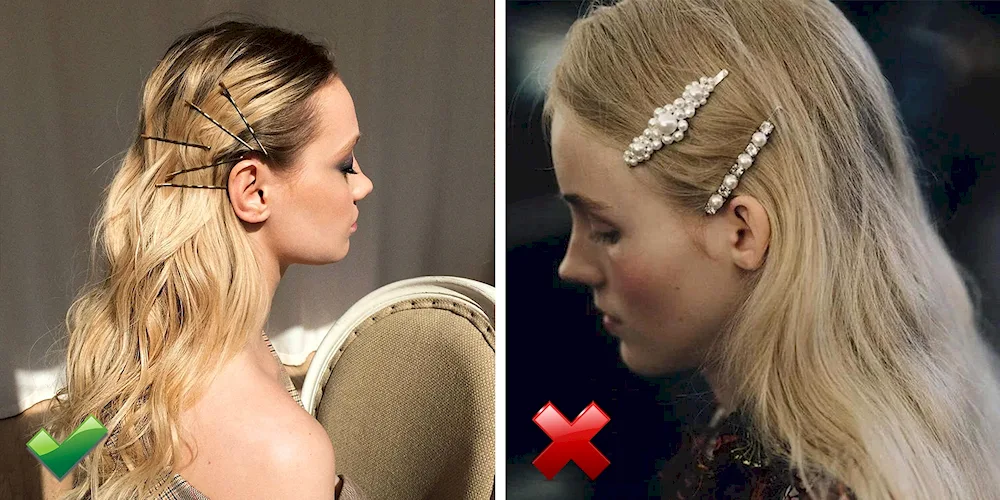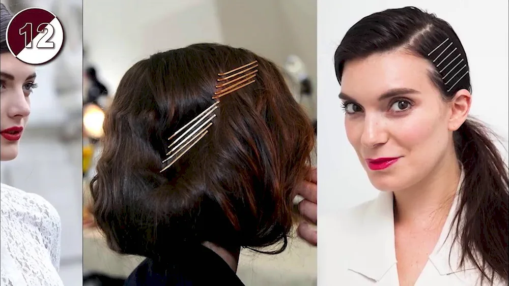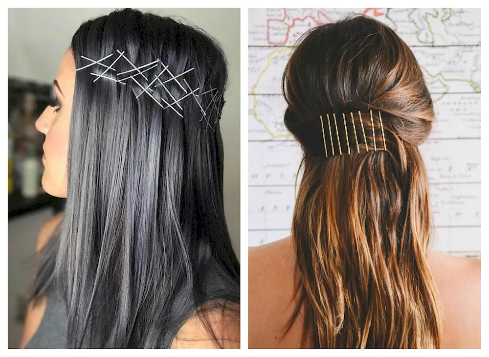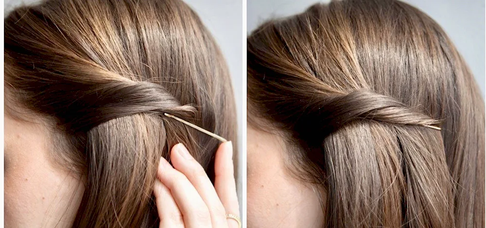 Styling with invisible hairpins Here are some images showcasing creative ways to style your hair using hidden hairpins. These photos demonstrate how to achieve elegant updos and intricate braids by strategically placing invisible hairpins for a flawless look.