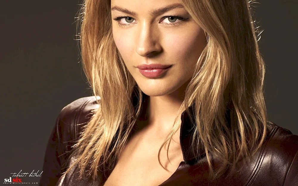 Tabrett Bethell Tabrett Bethell: A stunning portrait of the Australian actress looking glamorous in a red dress, a candid shot of her laughing during an interview, and a promotional image from her role in a TV series.