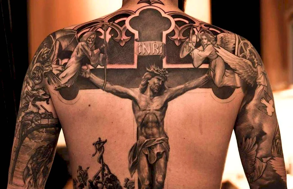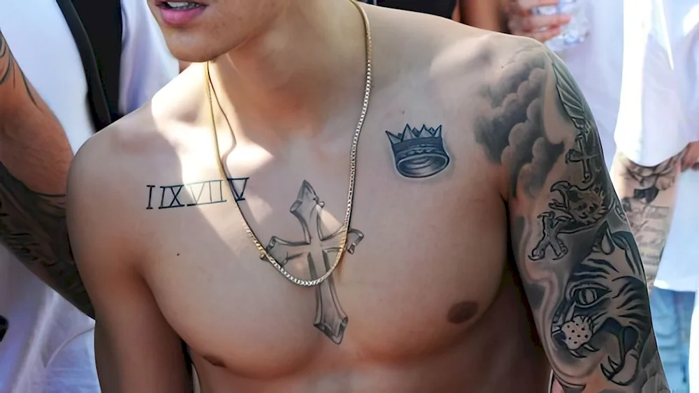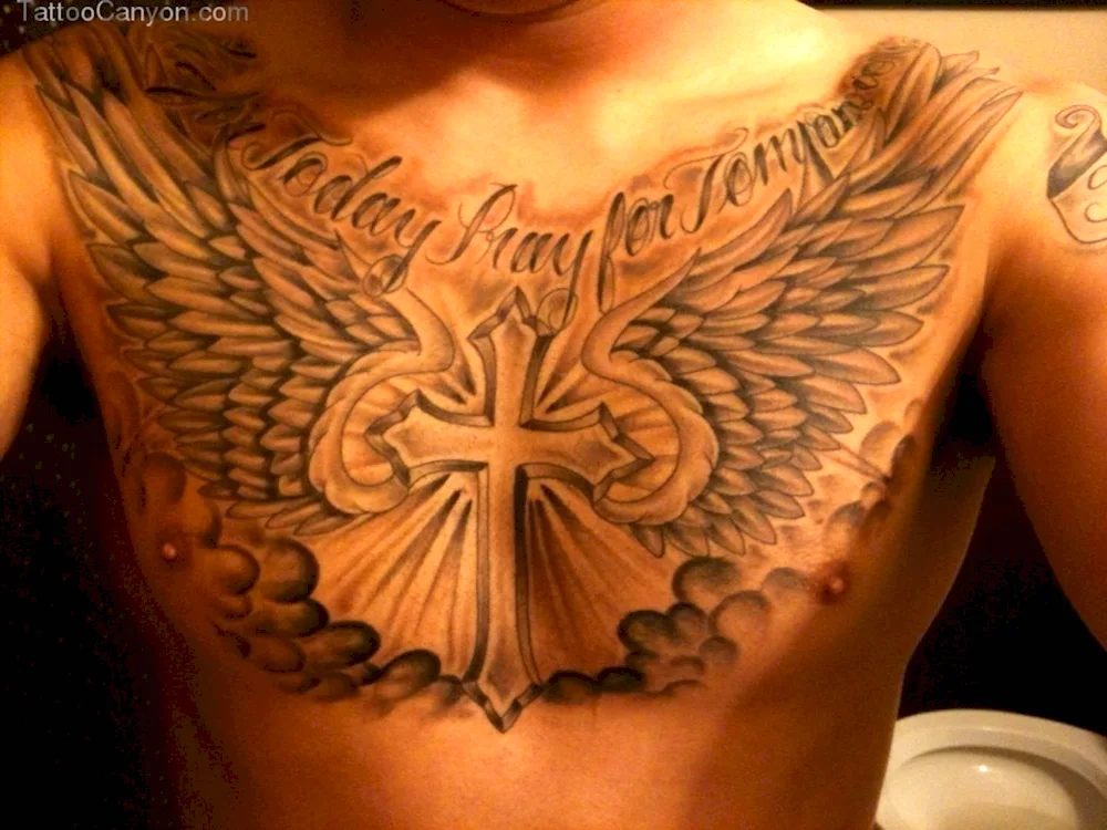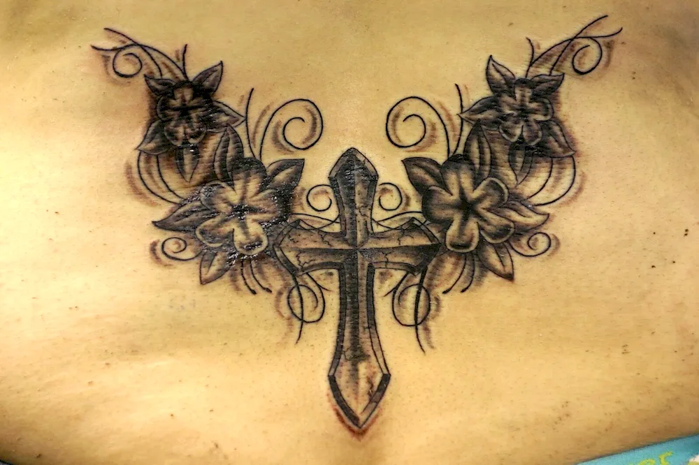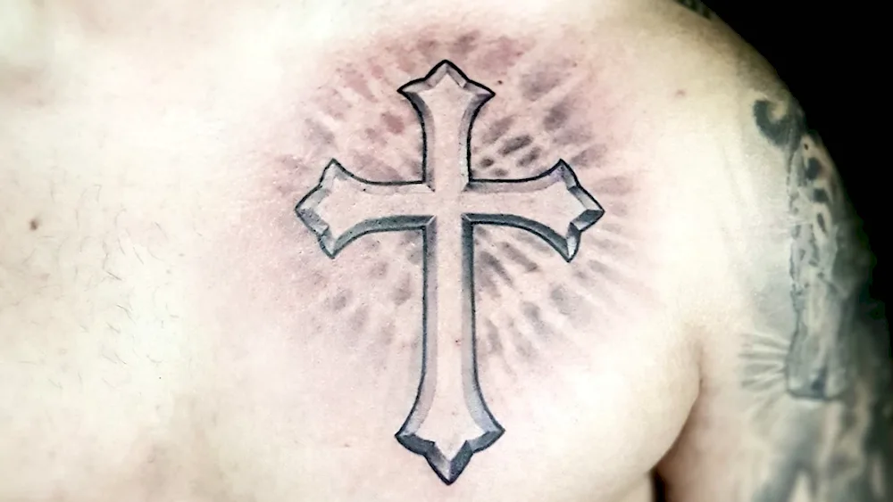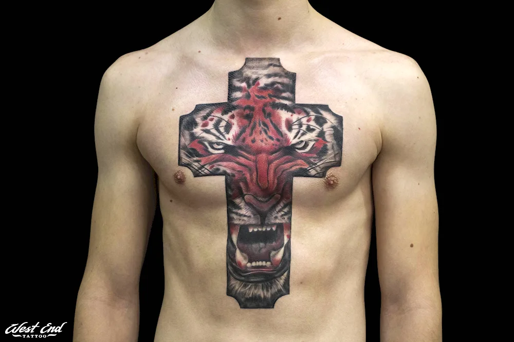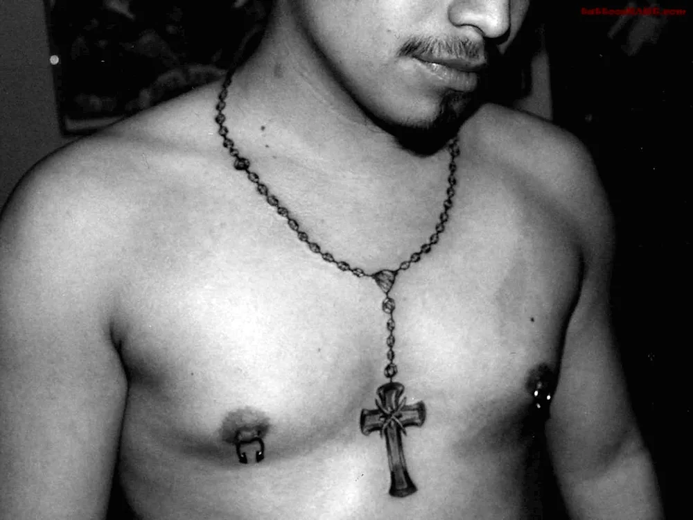 Tattoo cross on chest Check out these powerful images of a bold cross tattoo on the chest, showcasing intricate designs and deep symbolism. The placement of the tattoo adds a striking and meaningful touch to the overall look.