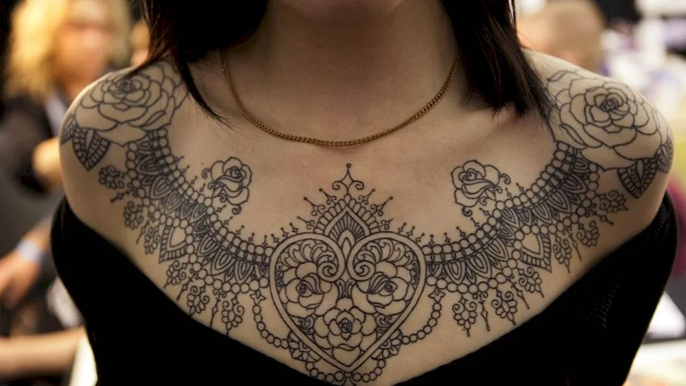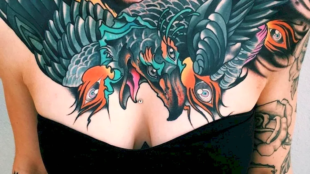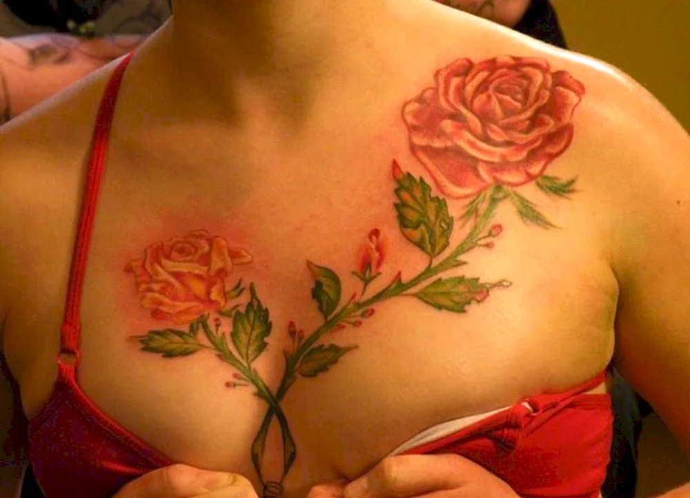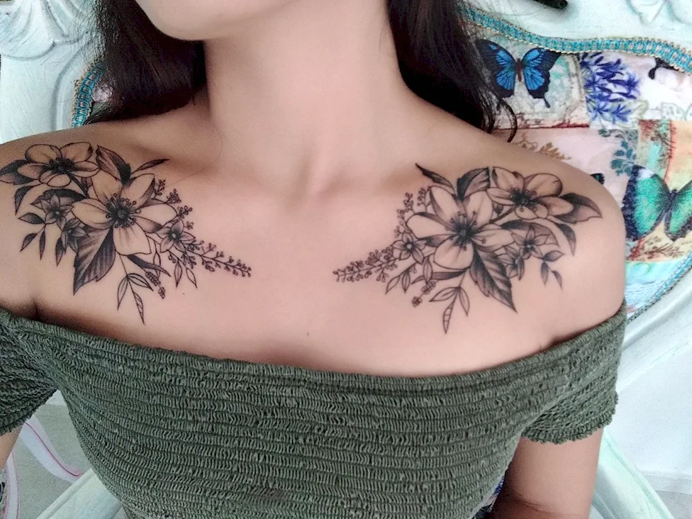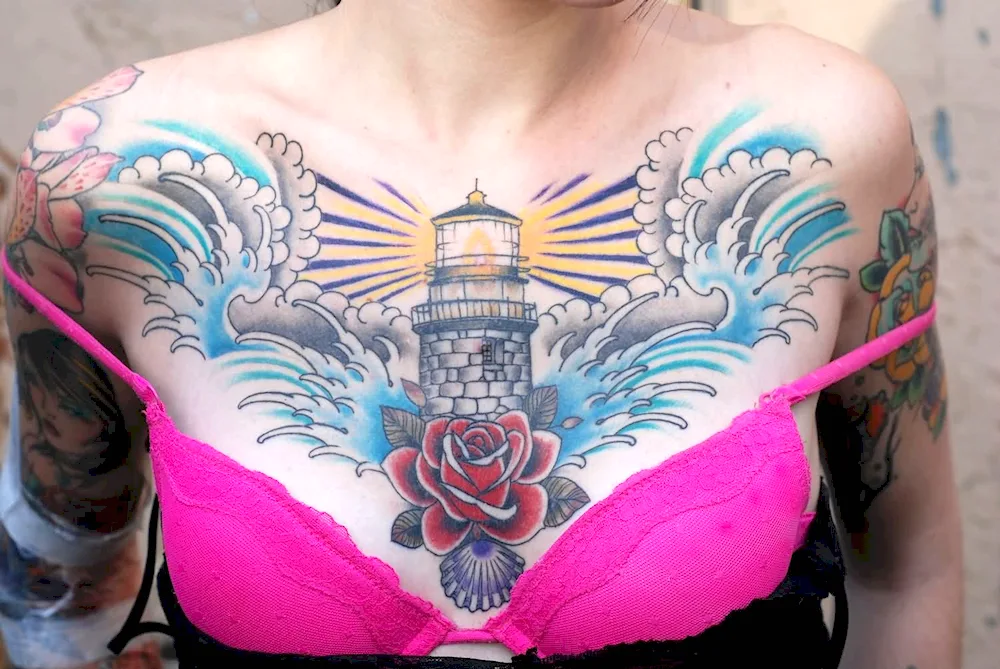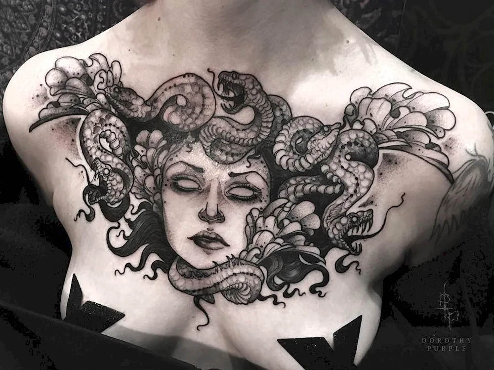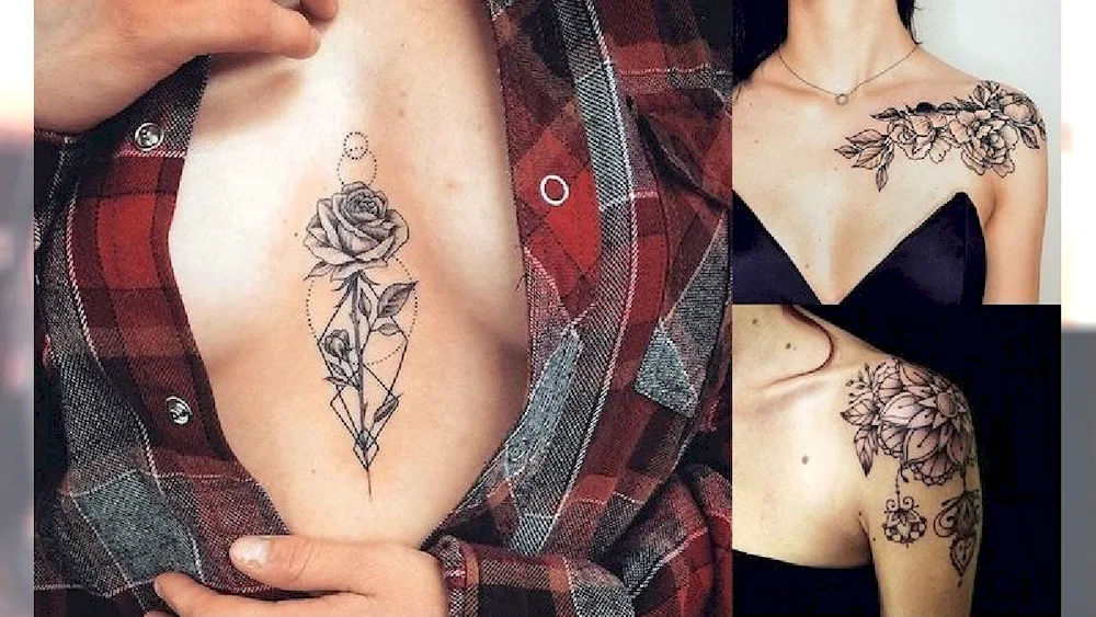 Tattoo on the chest female Check out these stunning images of women with chest tattoos showcasing beautiful and intricate designs. From delicate floral patterns to bold geometric shapes, these tattoos are sure to inspire your next ink!