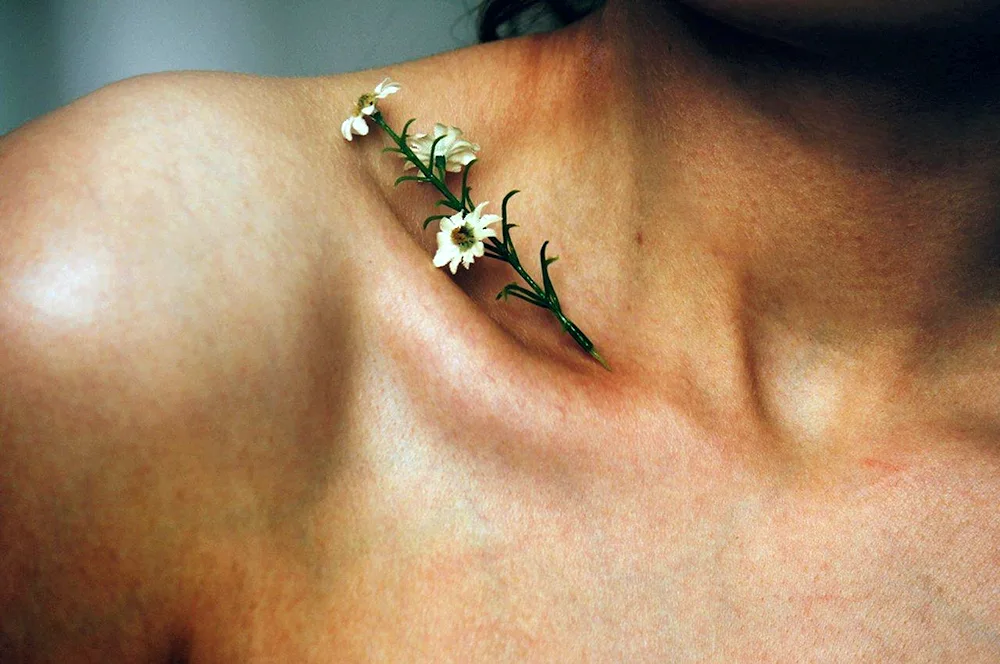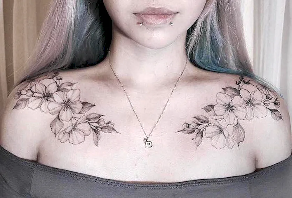 Images of tattoos on girls' collarbones showcase delicate and intricate designs, ranging from minimalist script to beautiful floral patterns. These tattoos add a touch of femininity and elegance to the collarbone area, making a stylish and eye-catching statement.