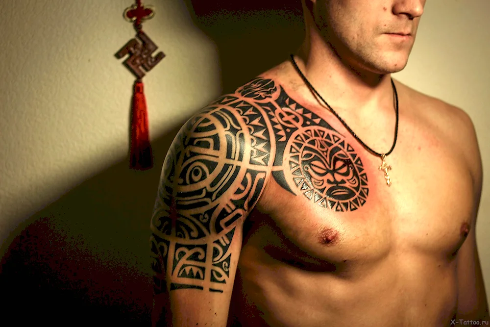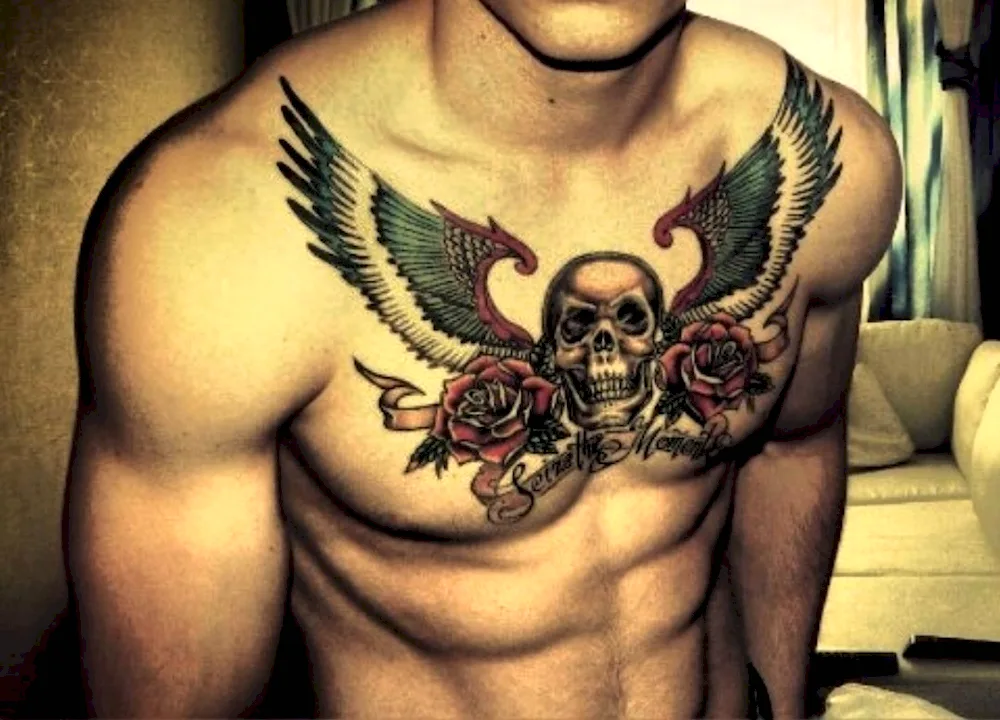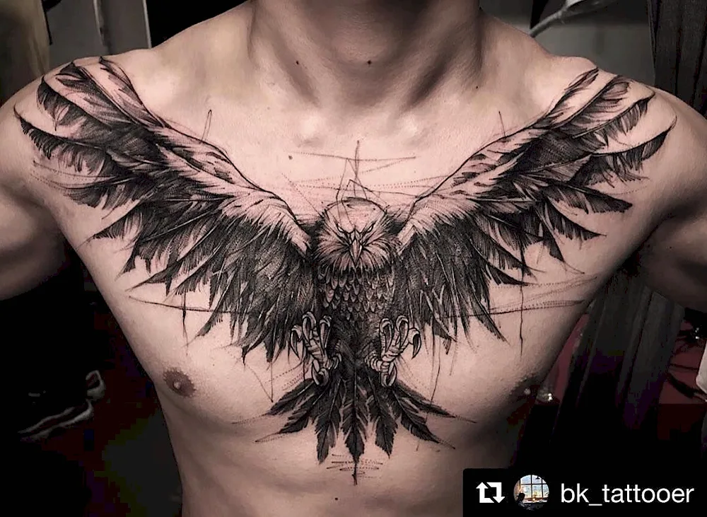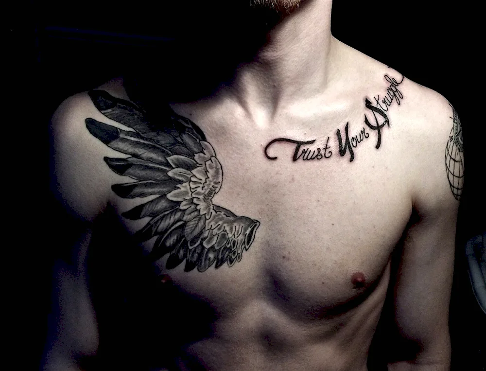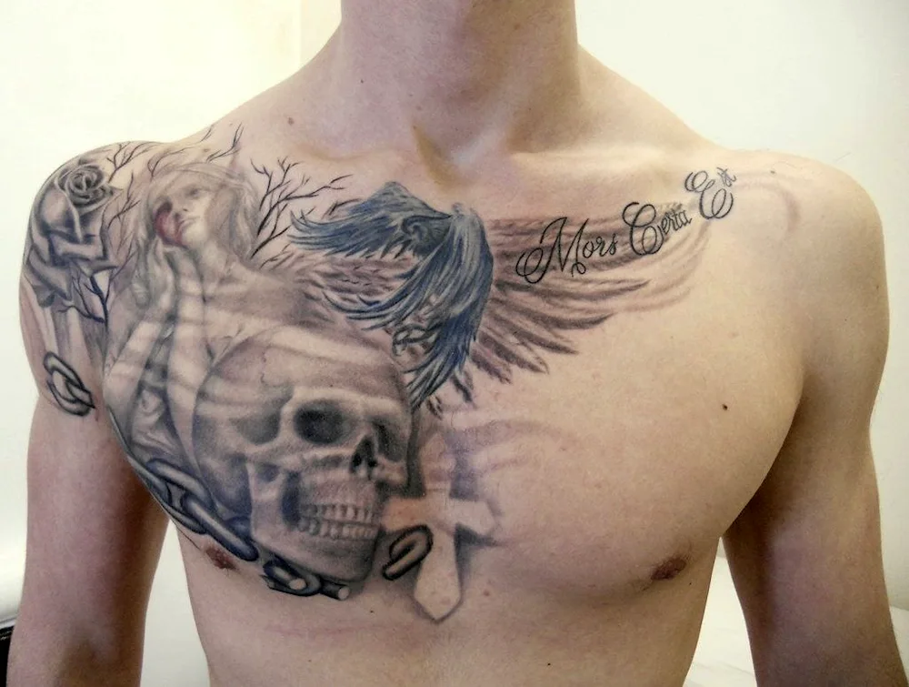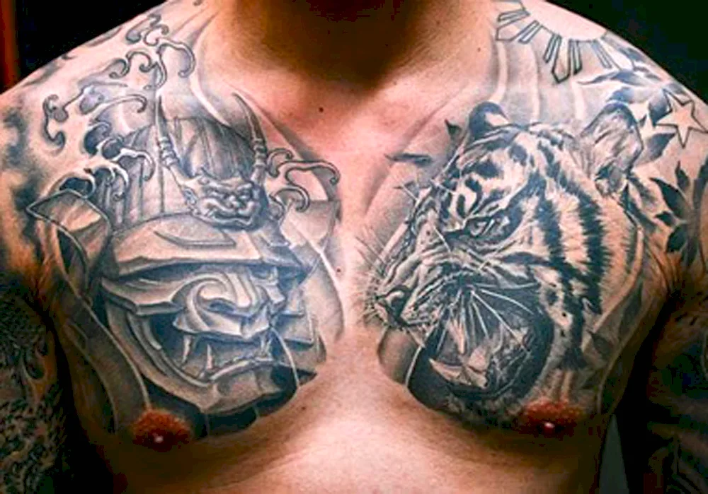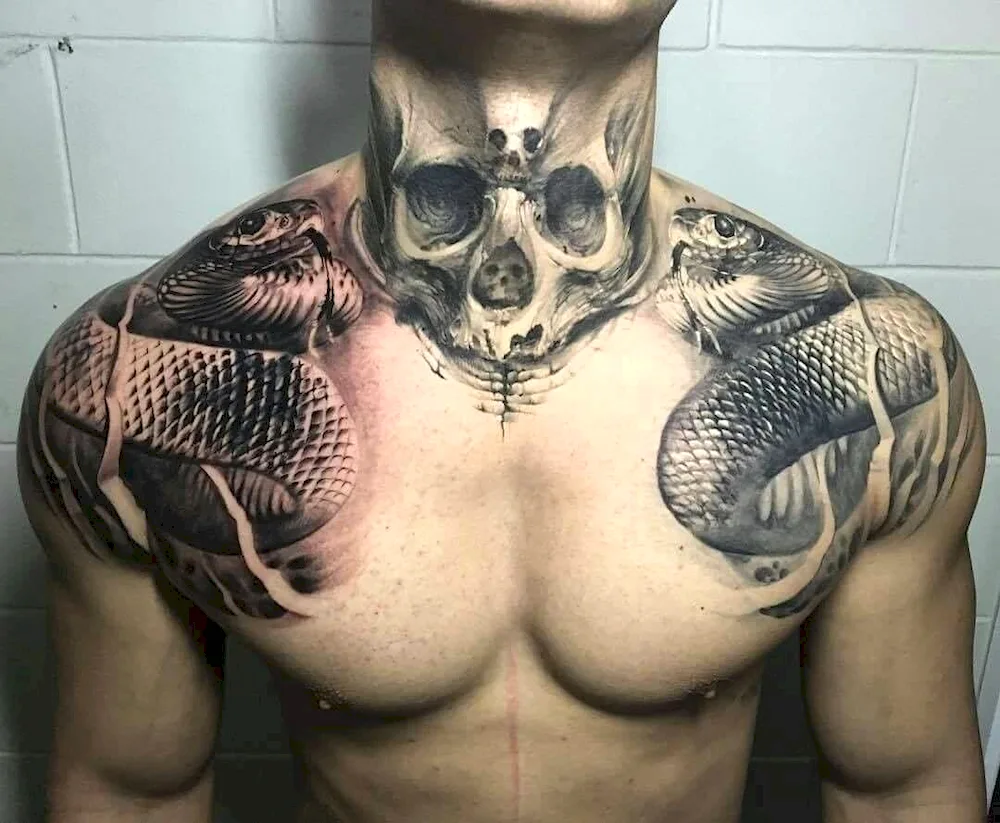 Chest Tattoo Shoulder to chest tattoo on men’s chest