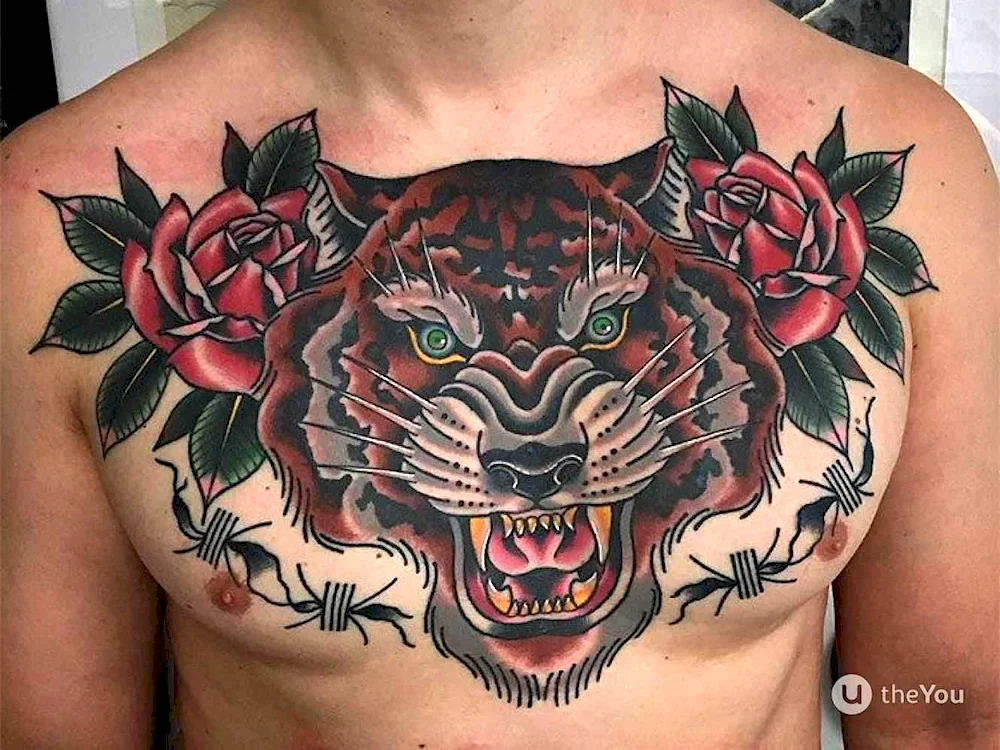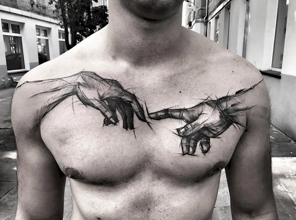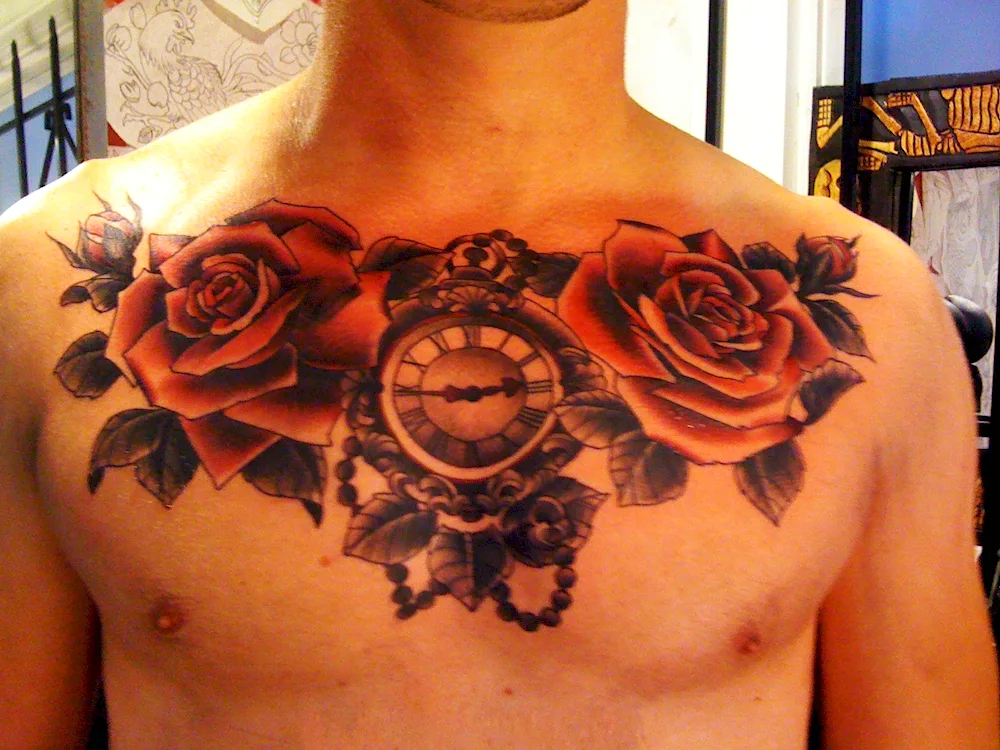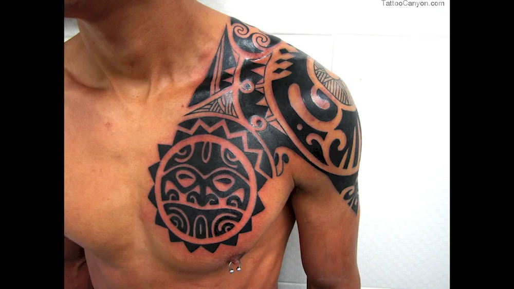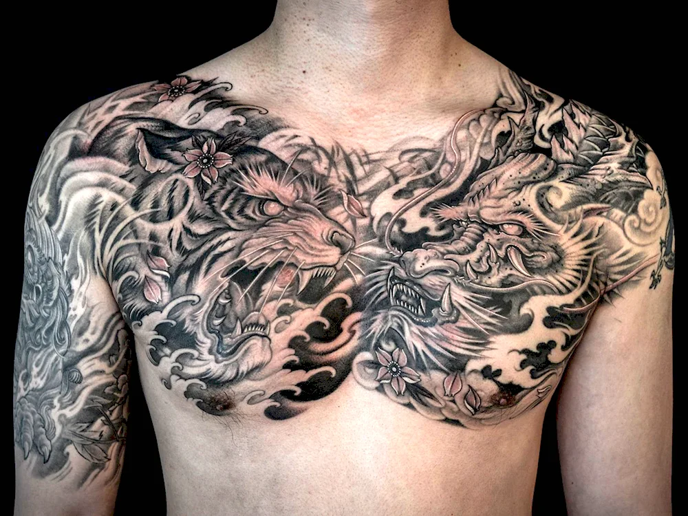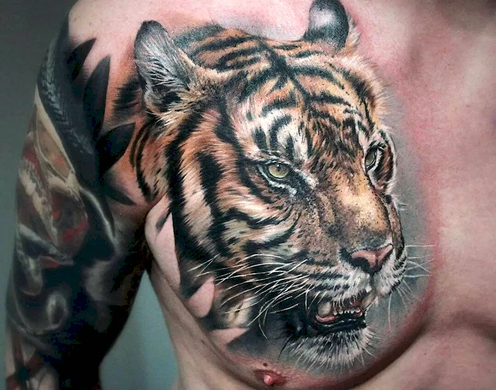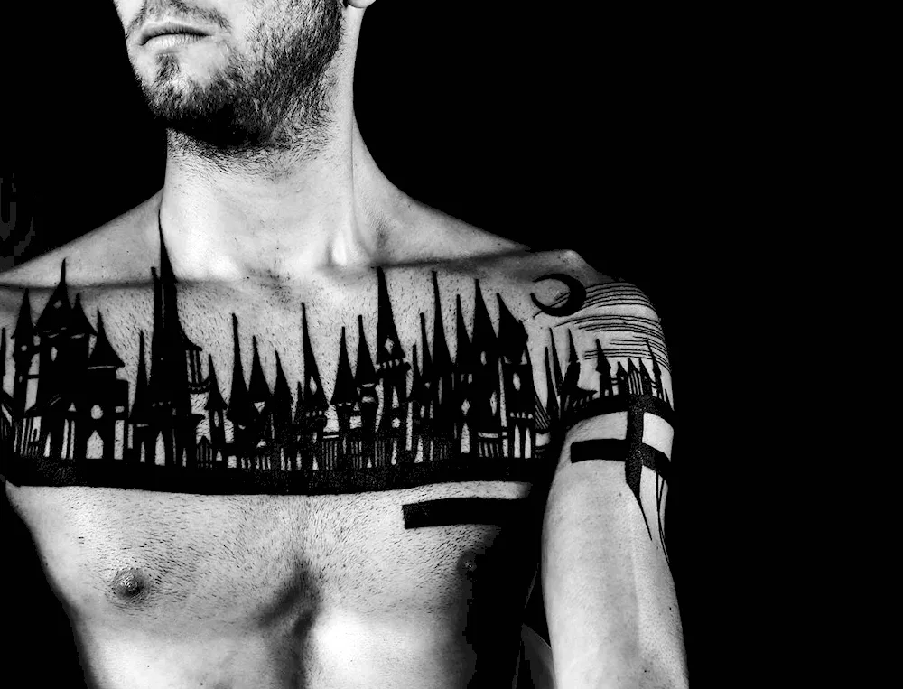 Chest Tattoo Shoulder to chest tattoo on men’s chest