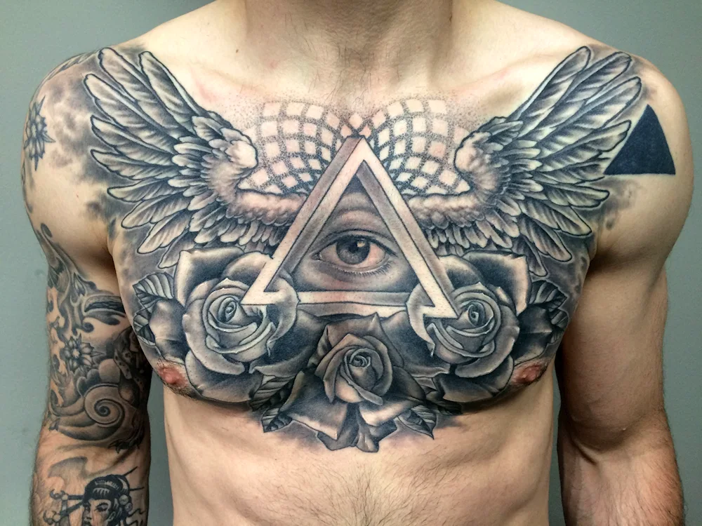 Here are some photos showcasing a variety of chest tattoos for men, ranging from intricate designs to bold blackwork pieces. These images capture the artistry and creativity that can be expressed through chest tattoos, offering inspiration for those considering getting inked in this area.