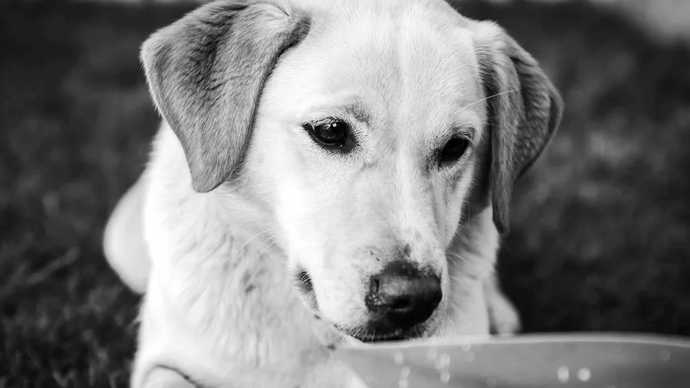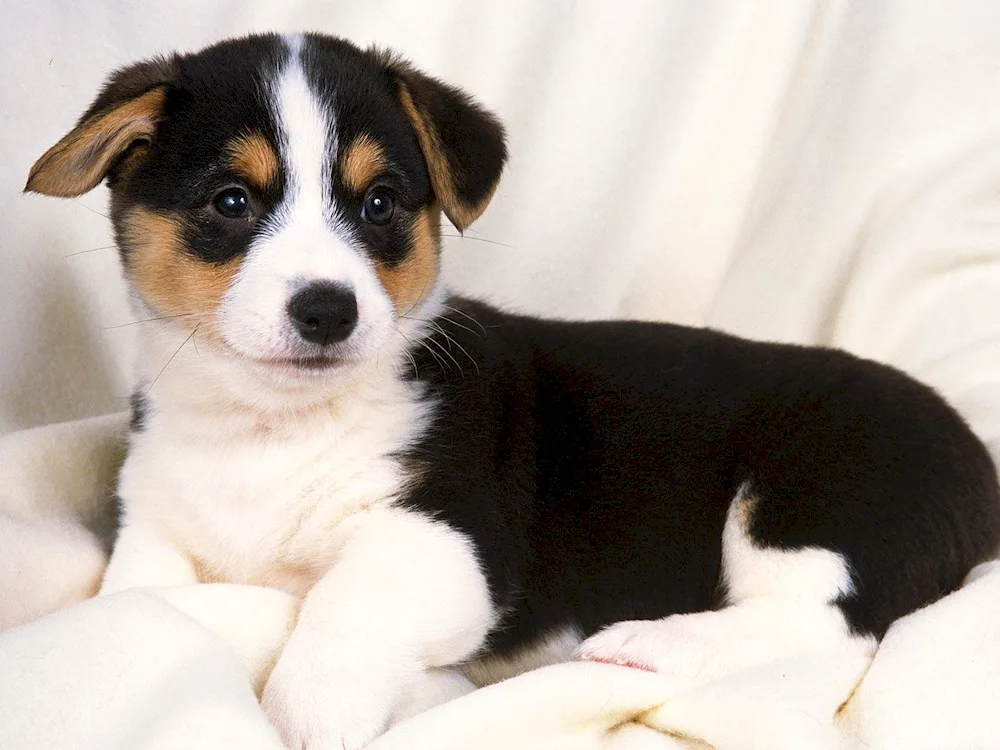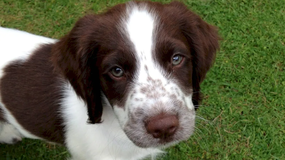 The adorable pup has a snowy coat with cute patches of chocolate brown. Its big, soulful eyes will melt your heart in an instant.