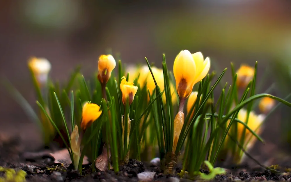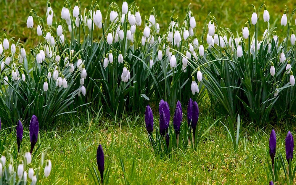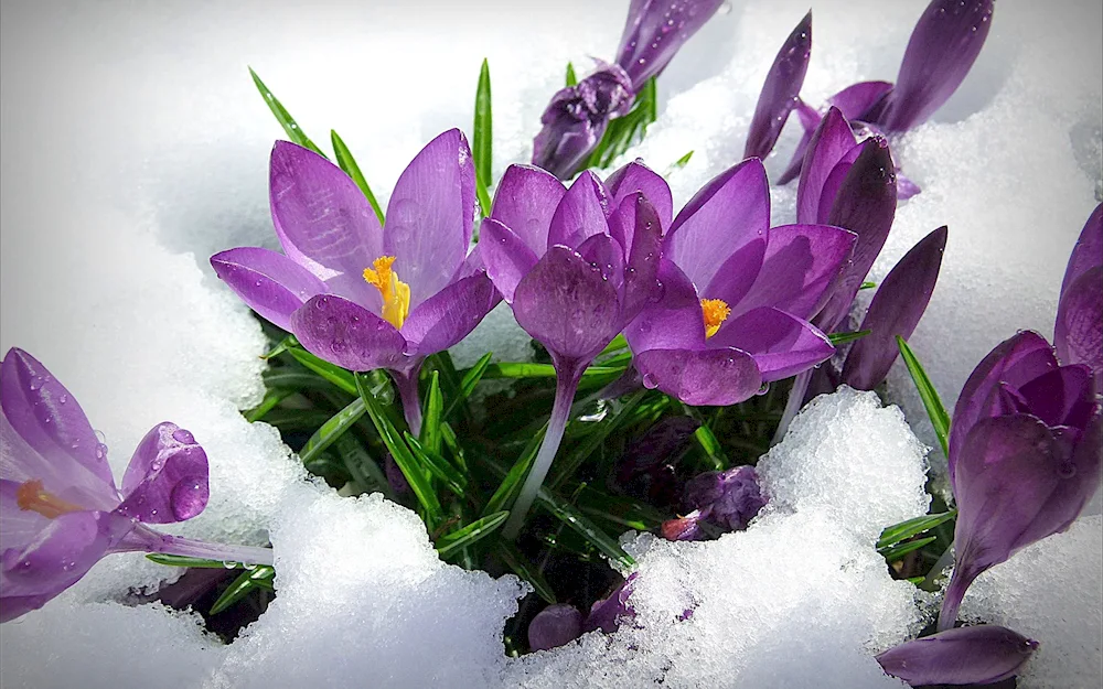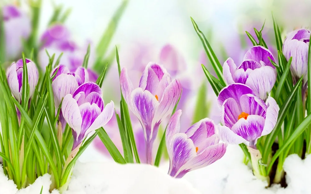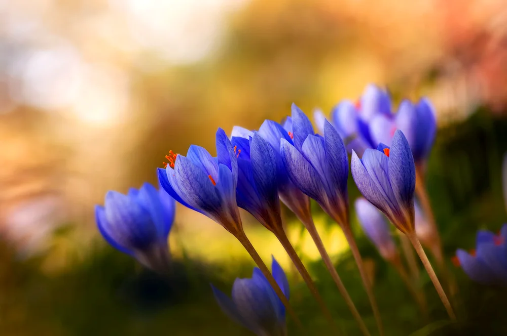Images of vibrant crocuses and daffodils blooming in the sun-drenched meadows, signaling the arrival of spring and bringing a splash of color to the world around us. Close-up shots capturing the delicate petals of snowdrops and cherry blossoms, symbolizing renewal and new beginnings in the natural world.