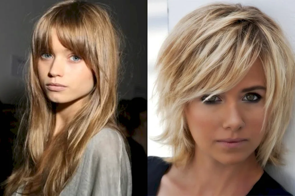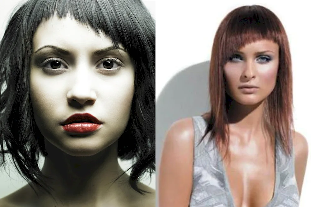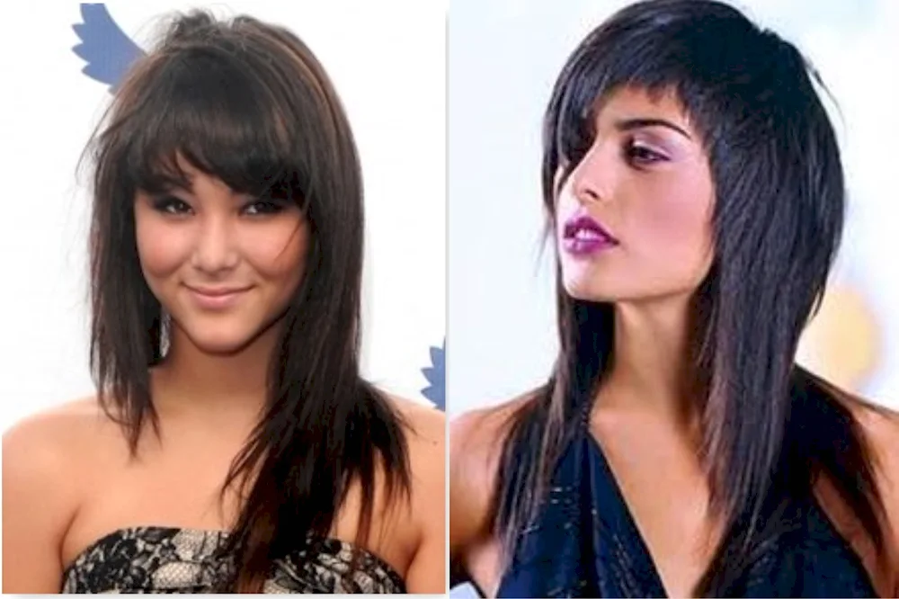 Photos of medium-haired individuals showcasing torn bangs with extensions on the sides, giving a trendy and edgy look. These images will inspire you to experiment with your own hair and try out this unique style.