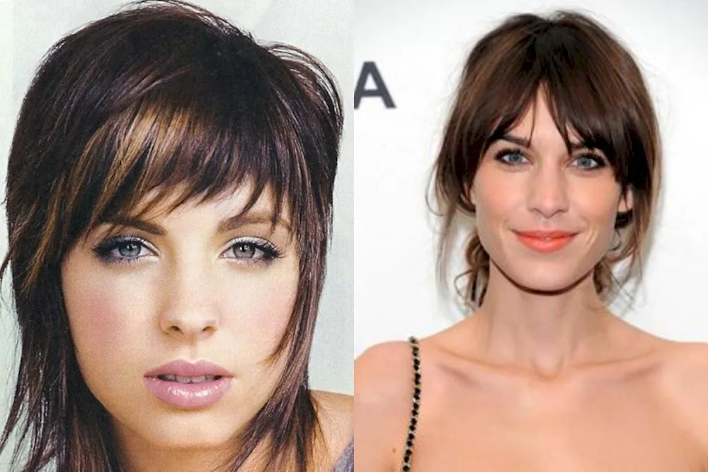 Examples of images showcasing long hair with torn side bangs include a photo of a woman with flowing locks and choppy fringe, as well as a close-up shot of textured layers framing the face. These pictures capture the edgy and versatile look that torn side bangs can add to long hair, perfect for anyone wanting to switch up their style.