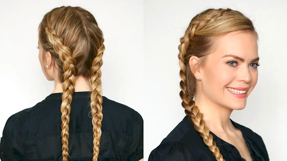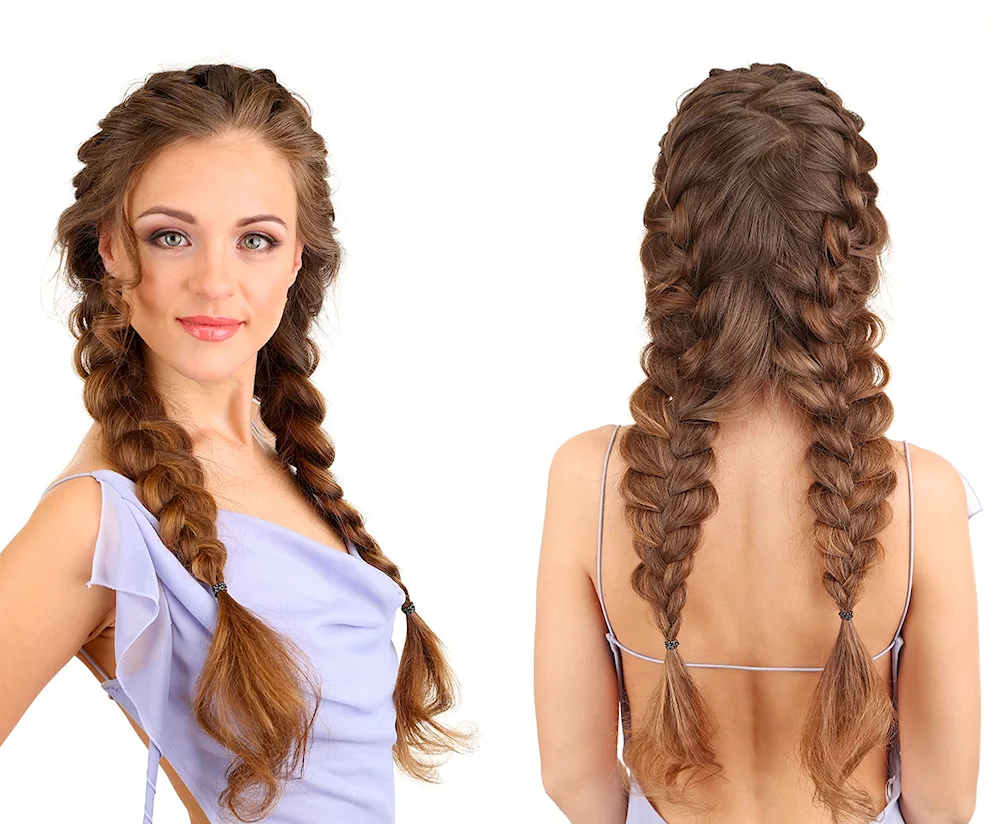 Photos of the hairstyle with two braids in front showcase a trendy and youthful look, perfect for a casual day out or a fun night with friends. The images capture the intricate details and versatility of this hairstyle, giving inspiration for those looking to spice up their look with a new hairdo.