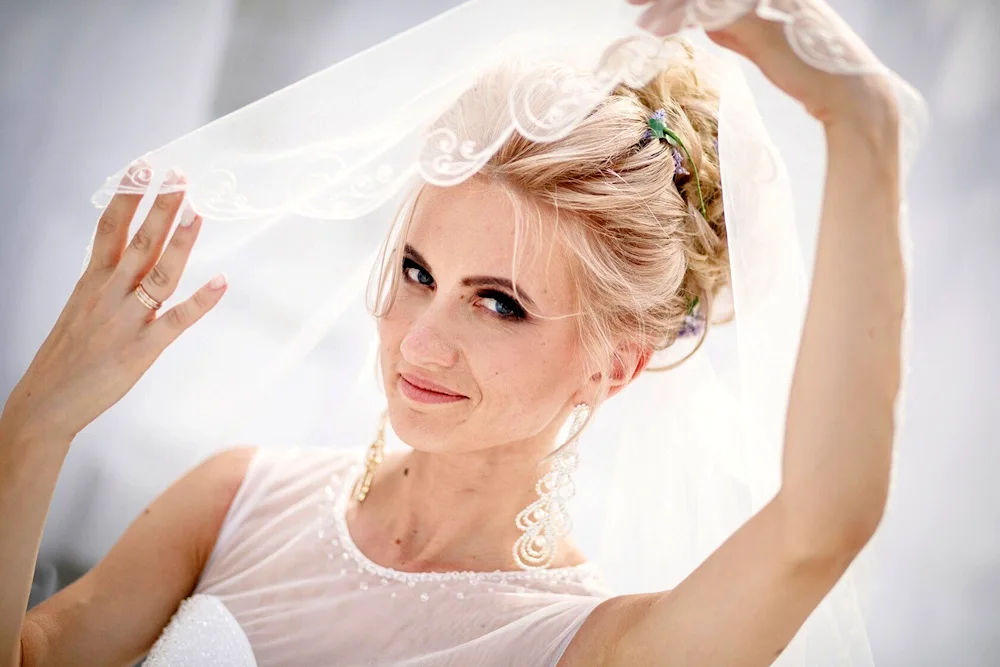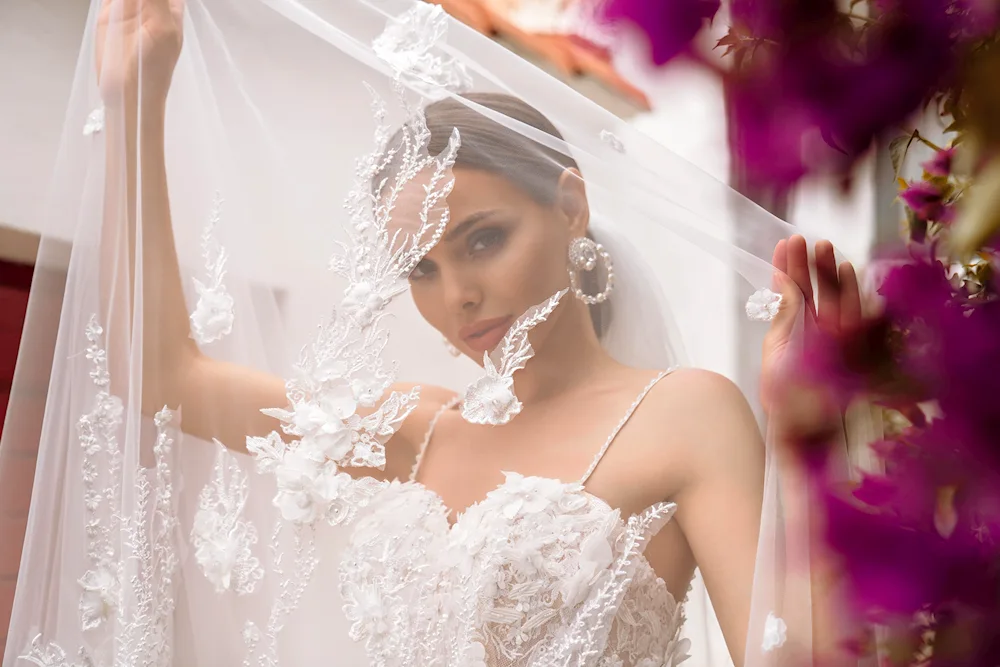 Photos showcasing the elegant draping of a veil over a bob hairstyle, highlighting the intricate detailing and styling possibilities for a sophisticated look. Explore the unique combination of a veil and bob for inspiration on achieving a modern and chic bridal or special occasion appearance.