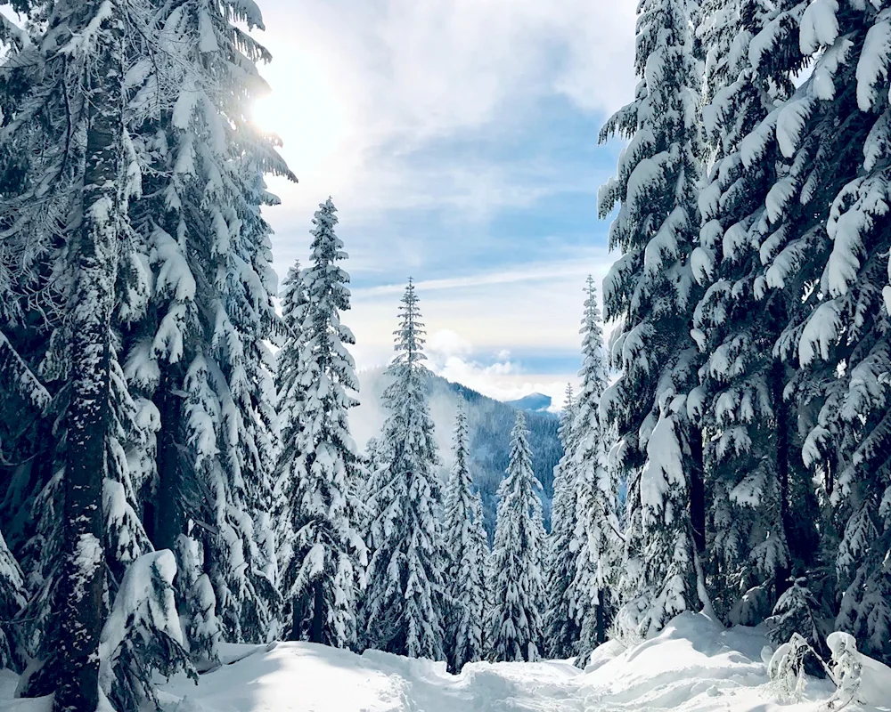 Collection of tall winter images showcasing snowy landscapes with towering trees covered in frost, creating a serene and peaceful atmosphere perfect for cozy days by the fireplace. The vertical orientation adds a sense of depth and height, making you feel like you're truly immersed in the winter wonderland.
