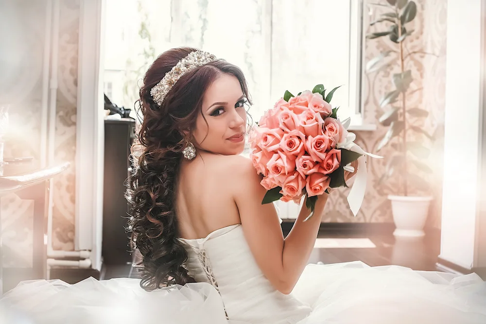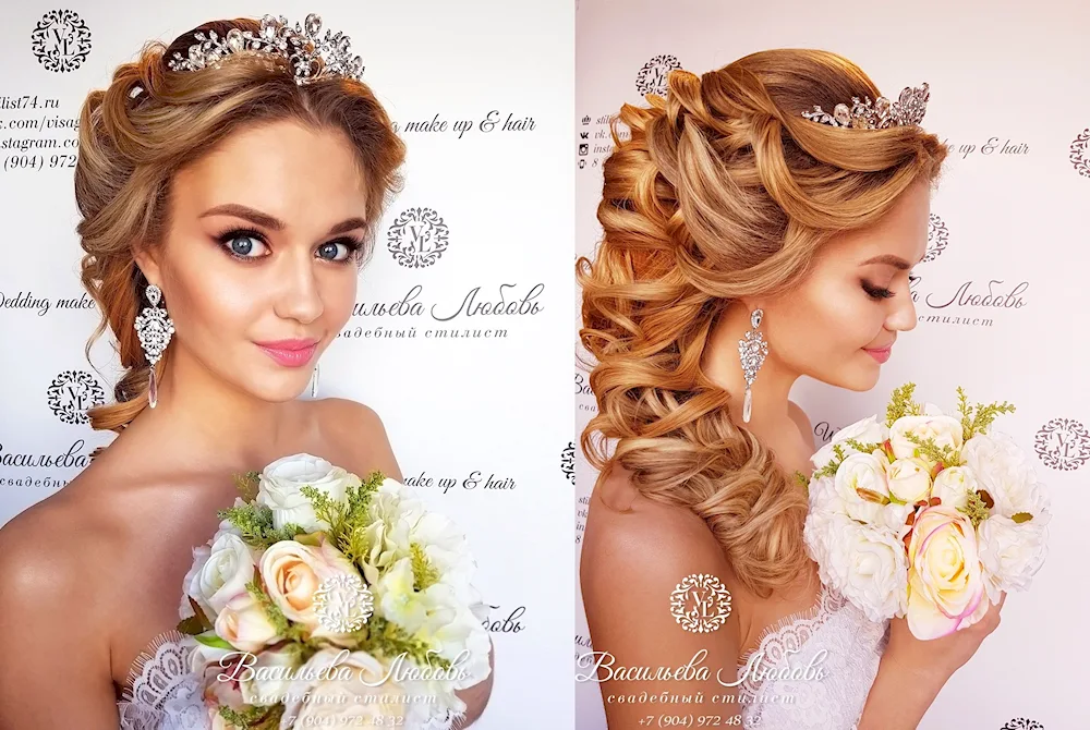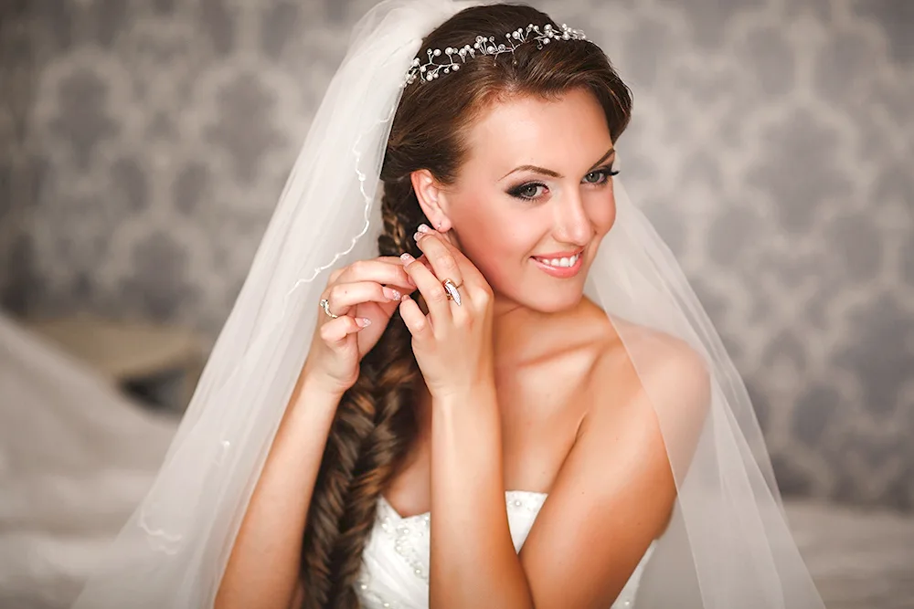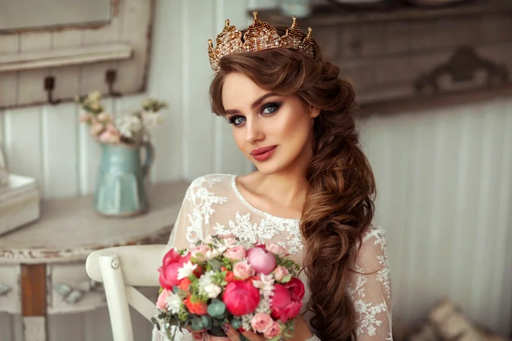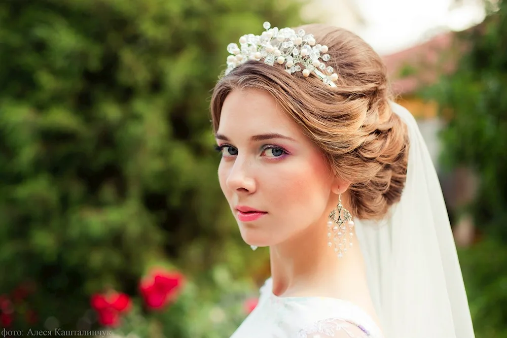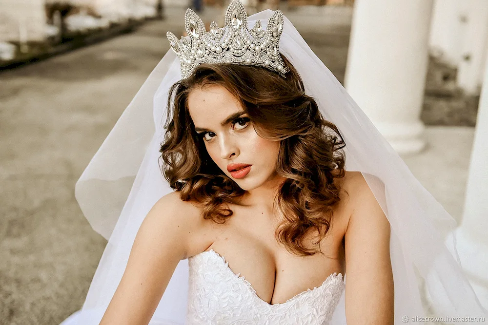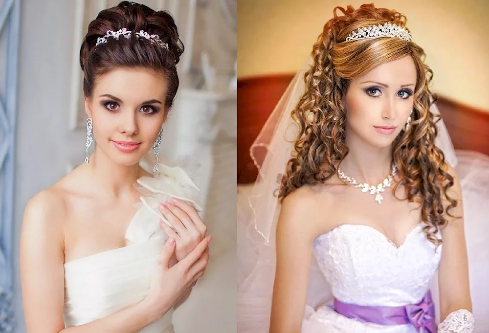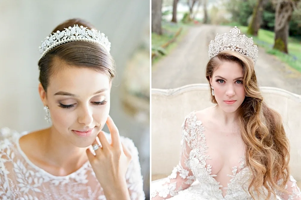 Wedding hairstyles with crown and veil Elegant bridal hairstyles adorned with delicate crowns and flowing veils, perfect for a fairytale wedding day. Explore stunning images showcasing various hair lengths and styles complemented by these classic accessories.