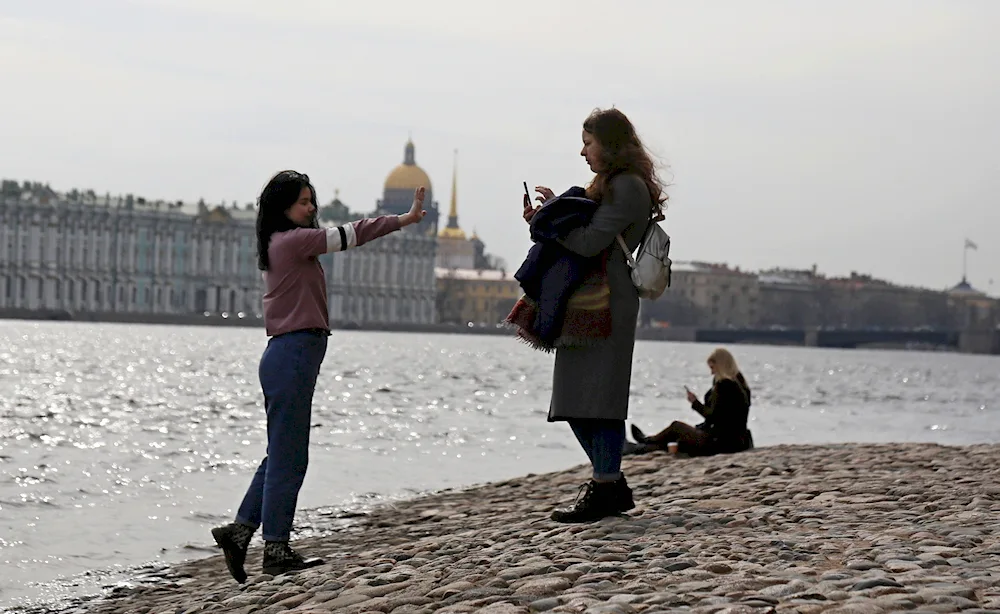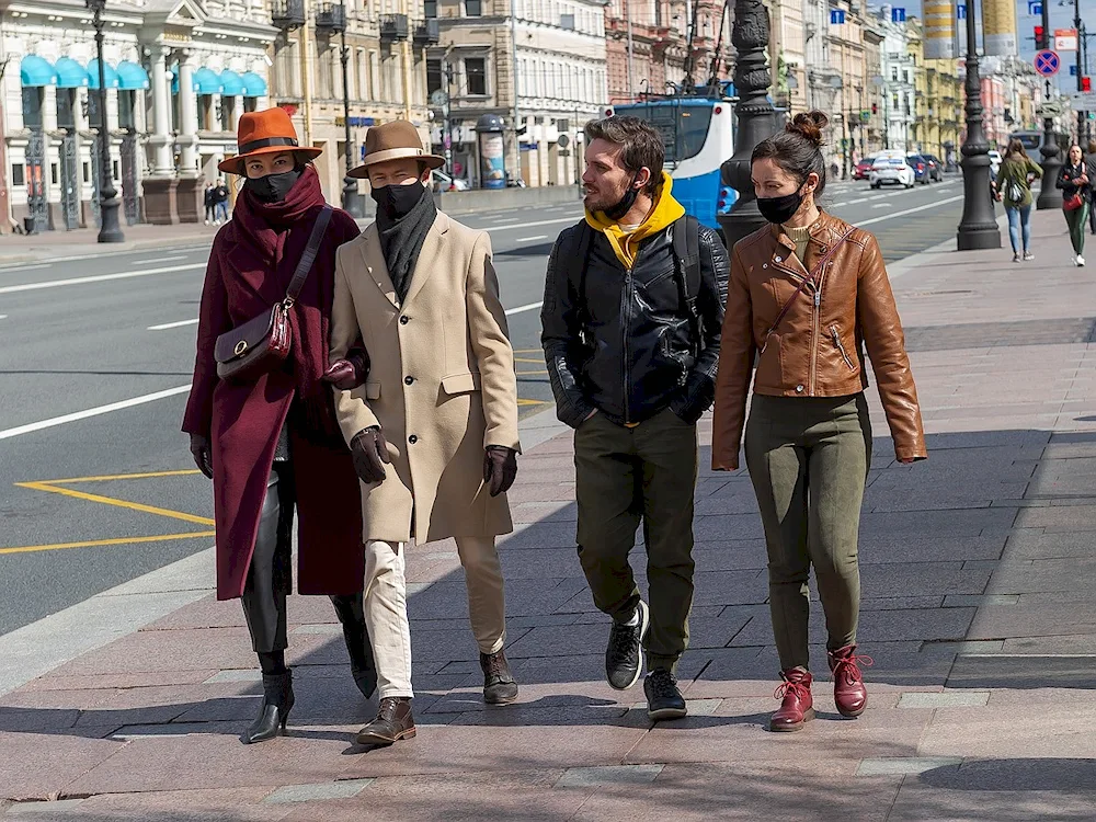 Stylish outfits in photos from St. Petersburg in April show people wearing light jackets, scarves, and boots to stay warm in the unpredictable spring weather. The images capture the mix of winter and spring fashion as locals navigate the changing seasons in the city.