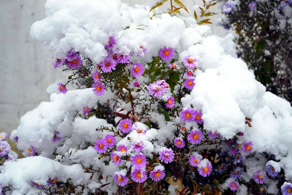 Winter flowers Check out these gorgeous images of flowers blooming in the winter season! You'll love the pops of color against the snowy background. Don't miss out on these stunning winter blooms!