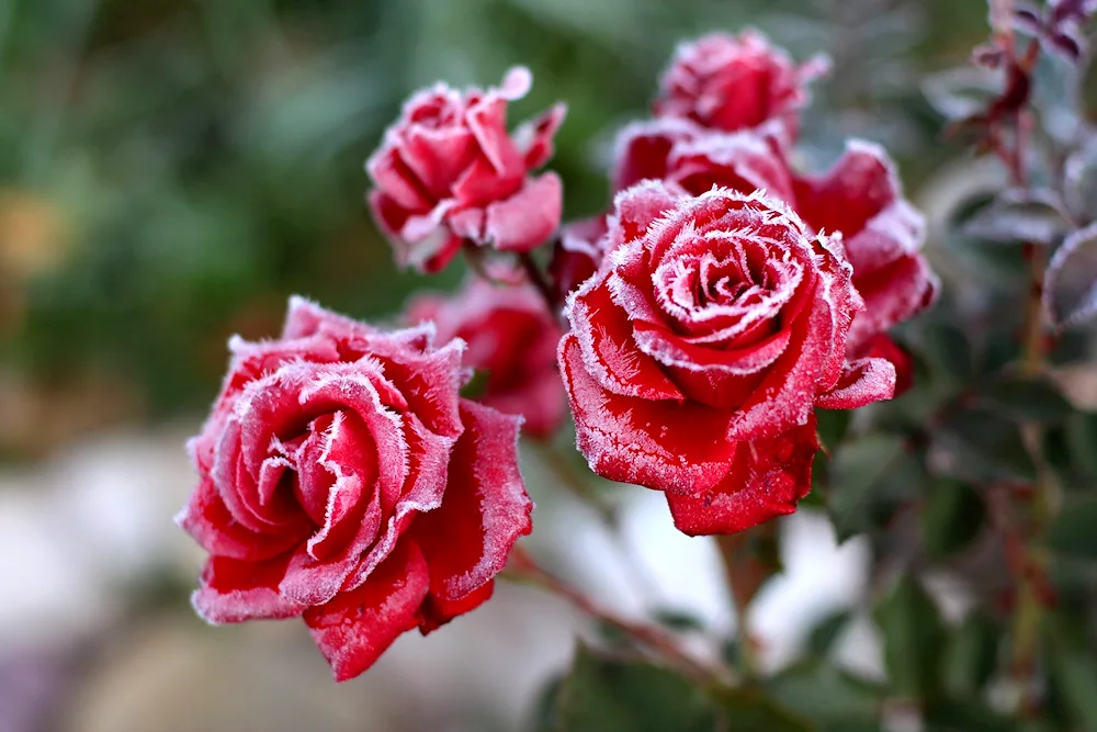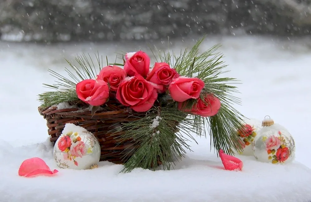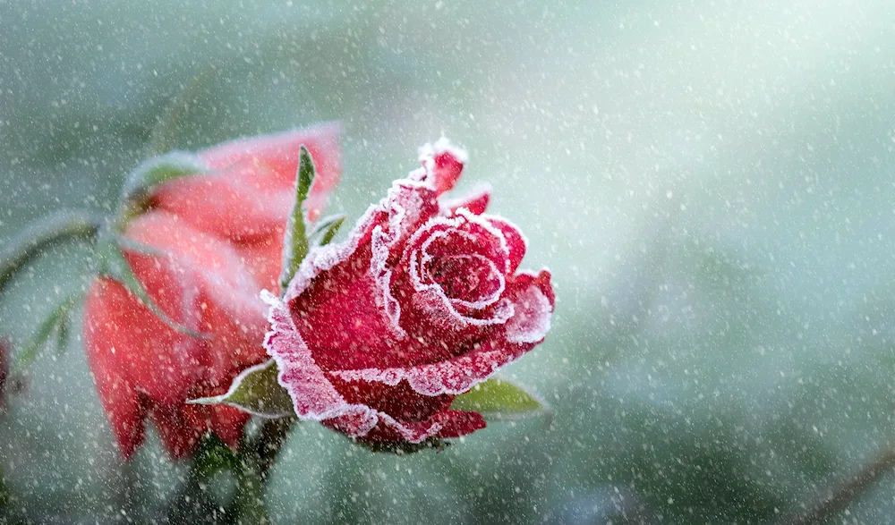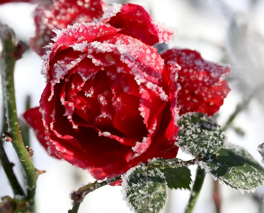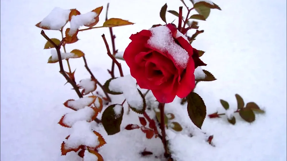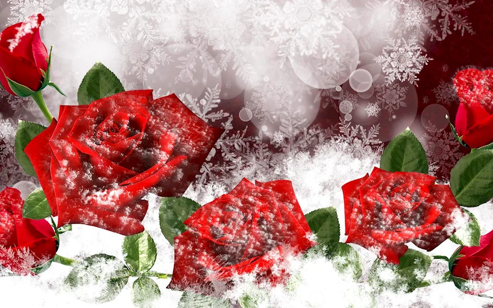 Winter roses Here are some beautiful images of roses blooming in the winter. The vibrant red petals against the snowy backdrop create a stunning contrast that will take your breath away.