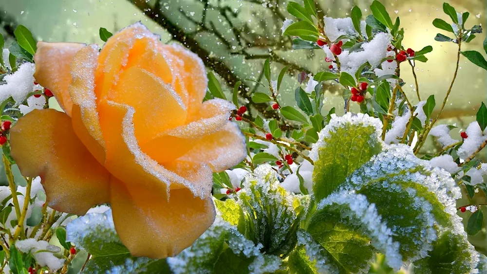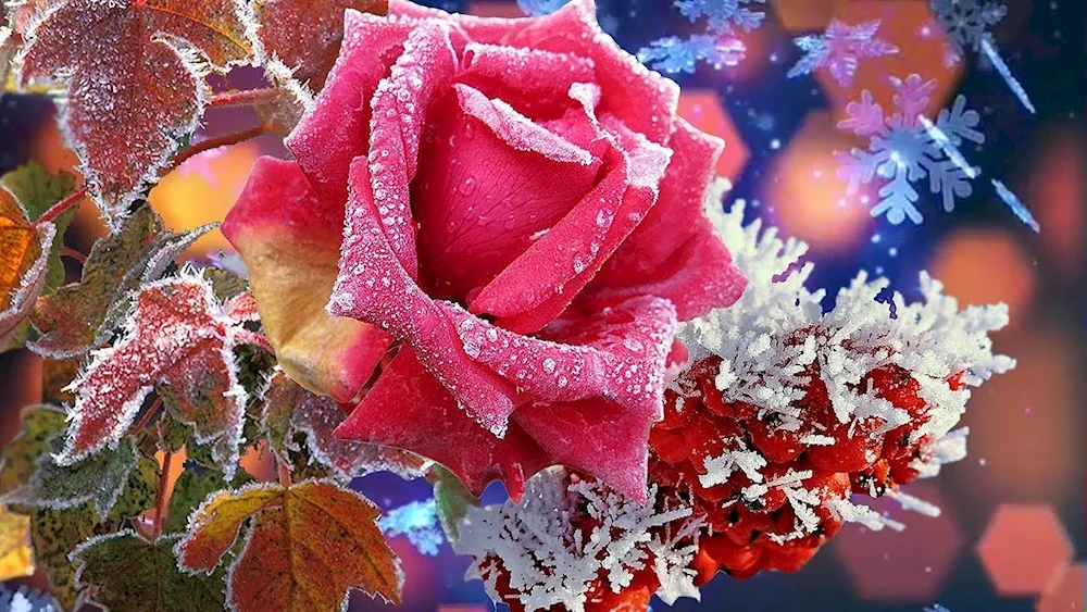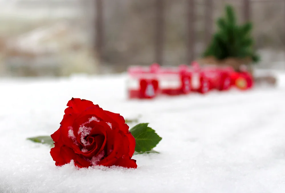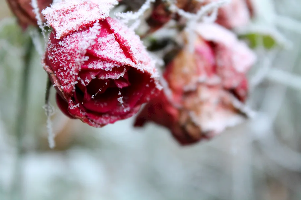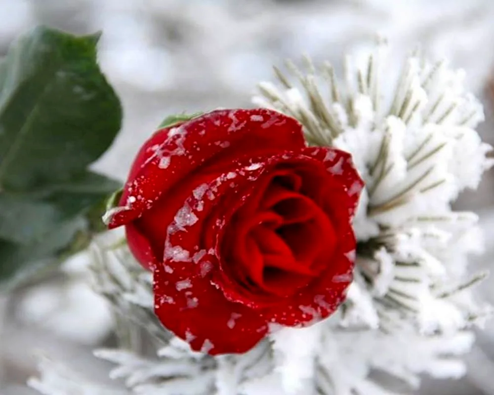 Winter roses Here are some beautiful images of roses blooming in the winter. The vibrant red petals against the snowy backdrop create a stunning contrast that will take your breath away.