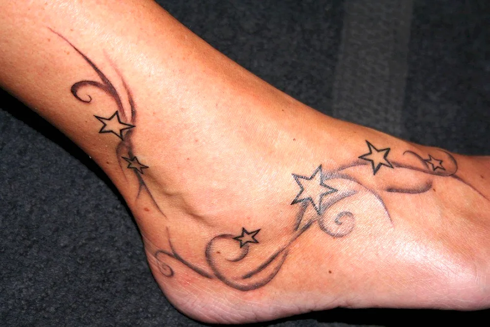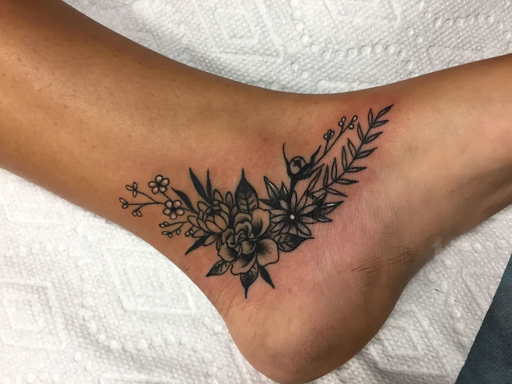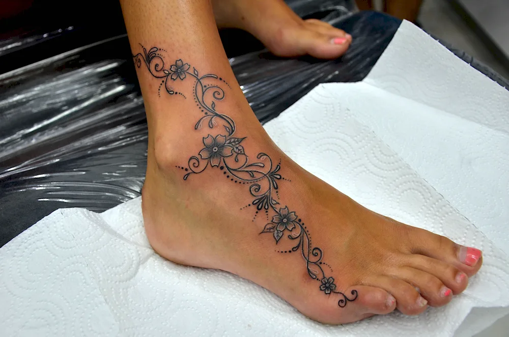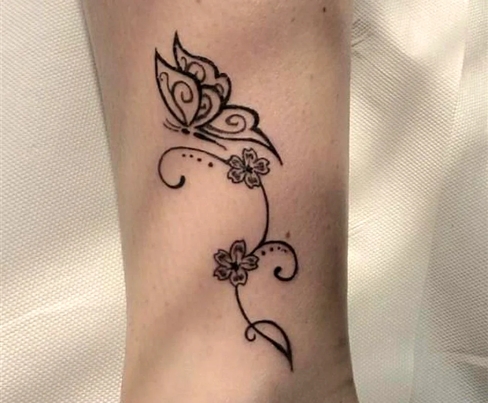Women’s ankle tattoos Photos of ankle tattoos on women showcasing intricate floral designs, delicate butterflies, and inspiring quotes, all beautifully inked on various skin tones. Images of small, minimalist ankle tattoos in black ink, from dainty hearts and tiny stars to elegant feathers and graceful vines.