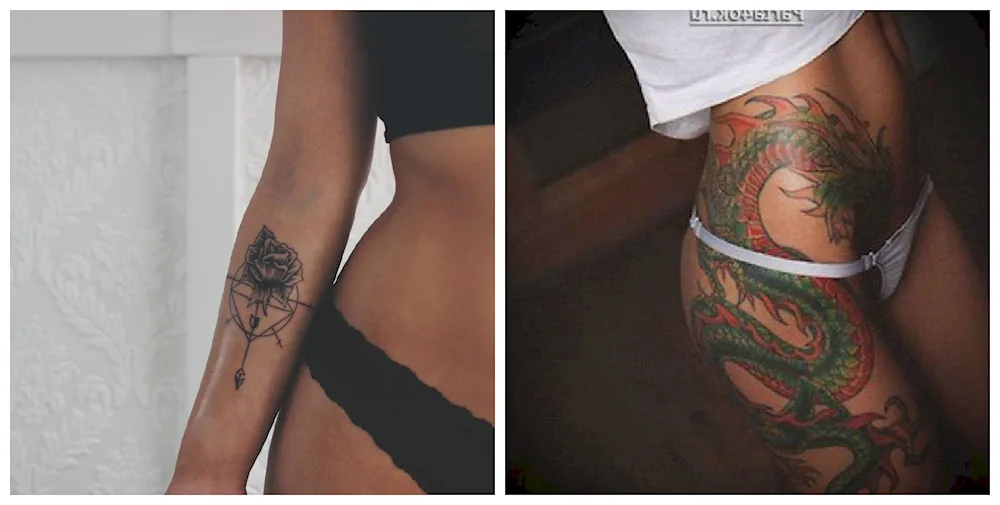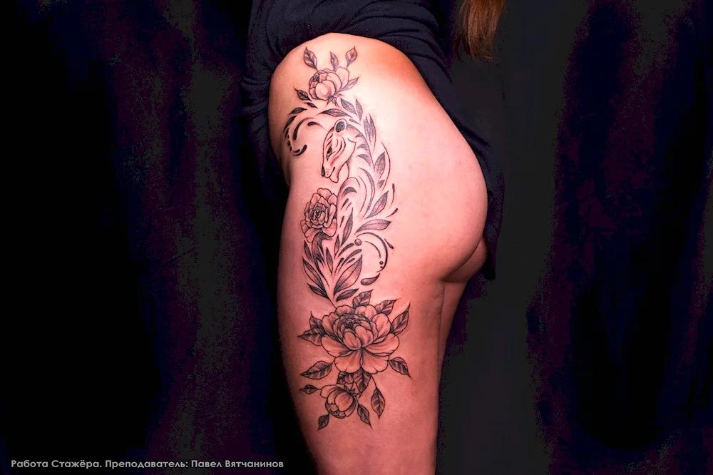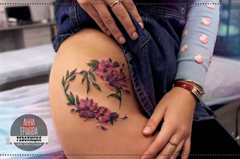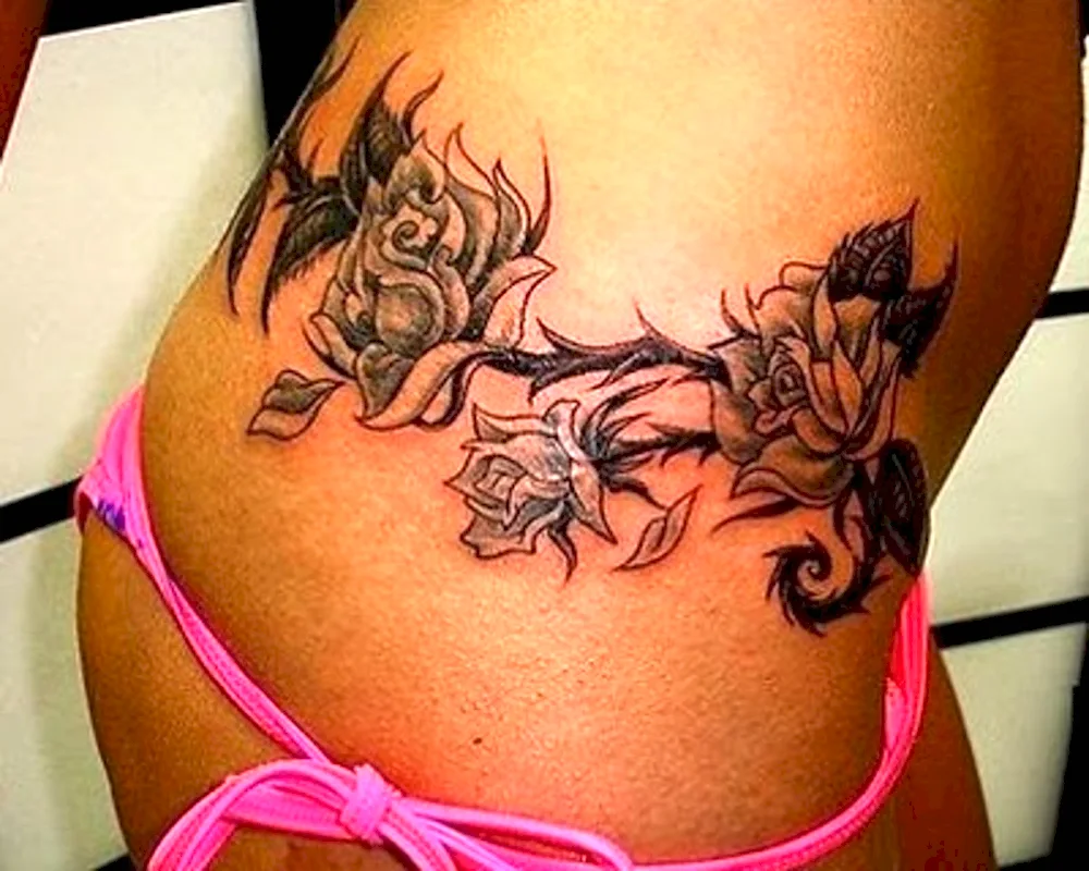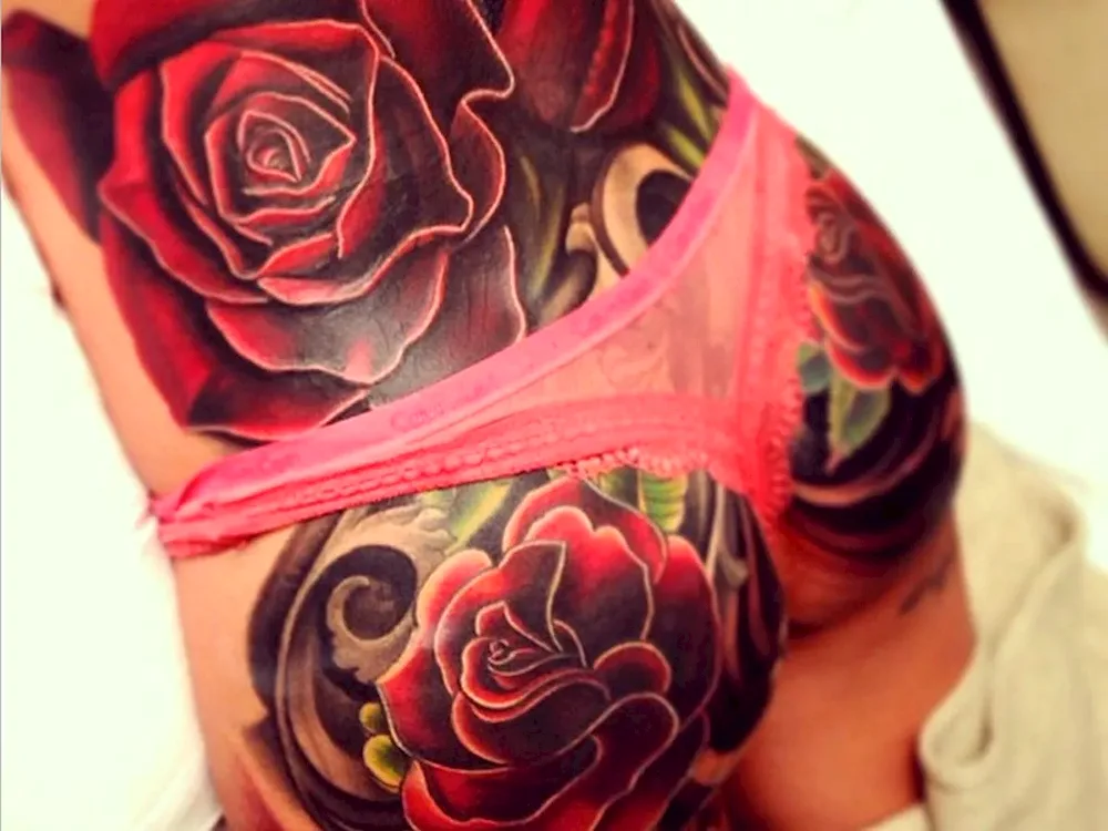Women’s Butt Tattoos Photos of various women's tattoos on their buttocks, showcasing intricate designs and colorful artwork. Each image captures the unique creativity and personal expression of the individual's chosen body art.