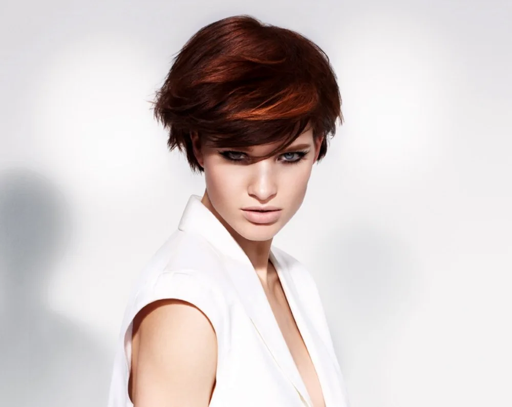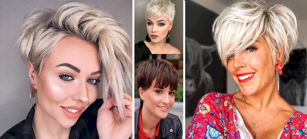 Bold women sporting different courageous hairstyles from buzz cuts to vibrant pixie cuts, showing confidence and self-expression through their daring hair transformations. The images capture the empowering journey of women embracing change and breaking stereotypes by fearlessly experimenting with their hair.