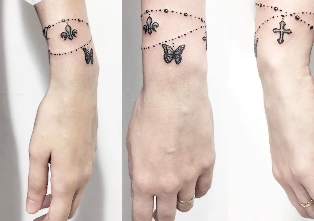 Check out these trendy wrist tattoos for women, featuring delicate floral designs, geometric patterns, and meaningful quotes. These images showcase how wrist tattoos can be both stylish and personal expressions of individuality.